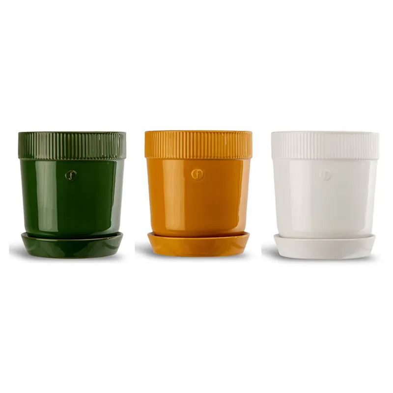 帶底盤的 Elise花盆將顏色、形狀與細節的設計表現極緻,排水孔與底盤的高度設計,與實用功能相結合。 Elisa 花盆採用經典的炻器製成,具有柔和的圓形形狀和簡單的直線切割。表面印有漂亮的sagaform logo以及sagaform設計特有的條紋,三種美麗而自然的顏色,展現每個家庭溫馨特色的戶外花園或陽台空間。 Elise花盆共有三種色系可供選擇。