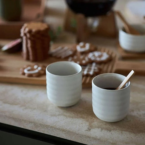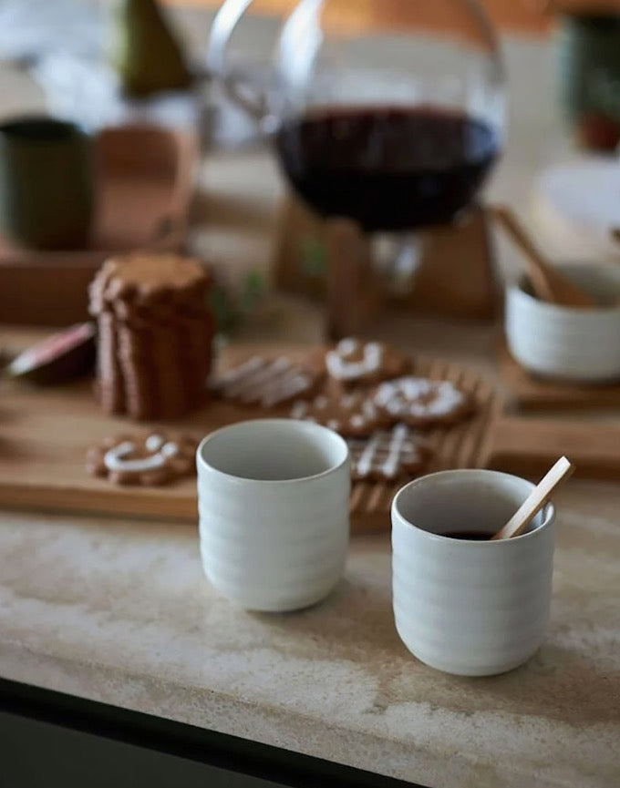 Ellen 馬克杯專為熱紅酒而設計,但在一年中的其他時間裡,每天也同樣適用於濃縮咖啡或茶等飲品。 帶有設計時尚質感色系,飄逸的褶邊。 當柔軟的形式設計遇到炻器堅硬的材質時,就會產生張力和吸引力。杯上的褶邊代表了 Sagaform 的特色條紋,顏色選擇接近大自然的米色以及綠色,優雅又獨具品味。