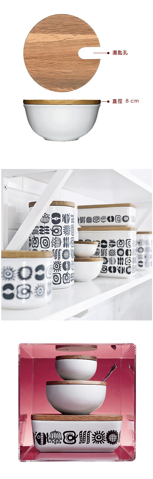 ◇瑞典品味生活 ◇觸感溫潤橡木碗蓋 ◇蓋口小洞靠放湯匙 ◇也可當調味收納碗 ◇容量約275ml 本商品一件入(不附湯匙)、容量 275 ml (非密封狀態),建議手洗清潔,橡木蓋清洗後請以乾布擦拭乾燥陰乾即可,不適用洗碗烘碗機。Keep 系列除了實用功能外,利用黑白對比色呈現小魚、蔬果與花卉的圖騰,為居家廚房增添簡約與極富童趣的質感,也展現大自然萬物生氣勃勃的姿態;樸實器皿搭配觸感溫潤橡木碗蓋,凸顯雅緻生活氣氛,且蓋口設有小孔,可讓碗中小湯匙靠放;亦可當調味料或香料收納碗使用,是餐桌廚房的必備推薦。