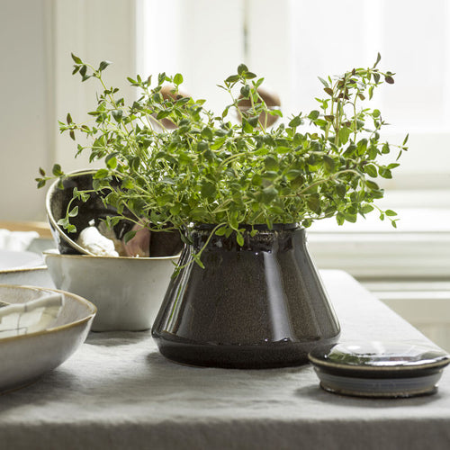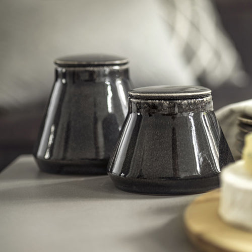 Sagaform Nature系列中,除了採用橡木,玻璃及金屬工藝製成外,還有一部分是炻器釉彩,具有經典的北歐簡約風格,適合每戶家庭在各種場合使用,完美的呈現北歐的生活風格。 生活中不可或缺的食物密封罐,使用復古的黑釉彩顯現優雅又具有個性的風采,封蓋的密封效果很好,除了適合保存食物乾糧,亦可以用來當做粧點廚房空間的花器,放上一些常用的新鮮香料也別有一番風味。 本款提供二種尺寸可供選擇。