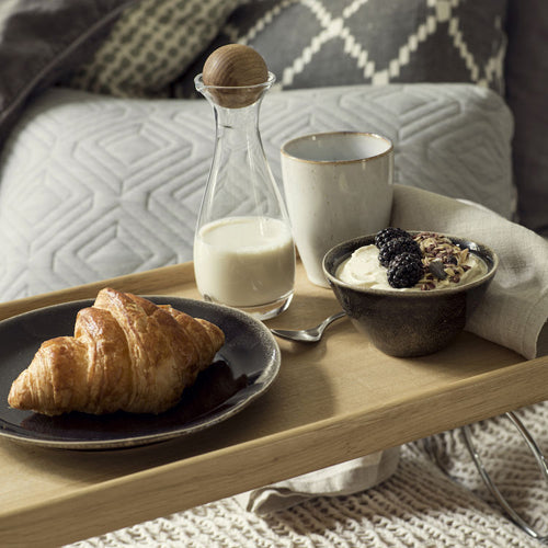 Nature系列中,除了採用橡木、玻璃及金屬工藝製成外,還有一部分是炻器釉彩,具有經典的北歐簡約風格,適合每戶家庭在各種場合使用,完美的呈現北歐的生活風格。近年北歐的餐桌上也十分流行使用炻釉彩系列的餐盤,炻器高溫燒制再上釉彩,每個餐盤都會有獨一無二的紋路,搭配復古的黑釉彩,讓餐桌饗宴更顯迷人。 可微波,放置洗碗機清洗及烤箱耐熱220度