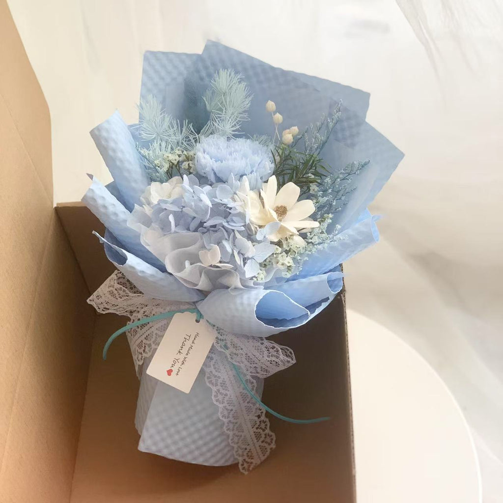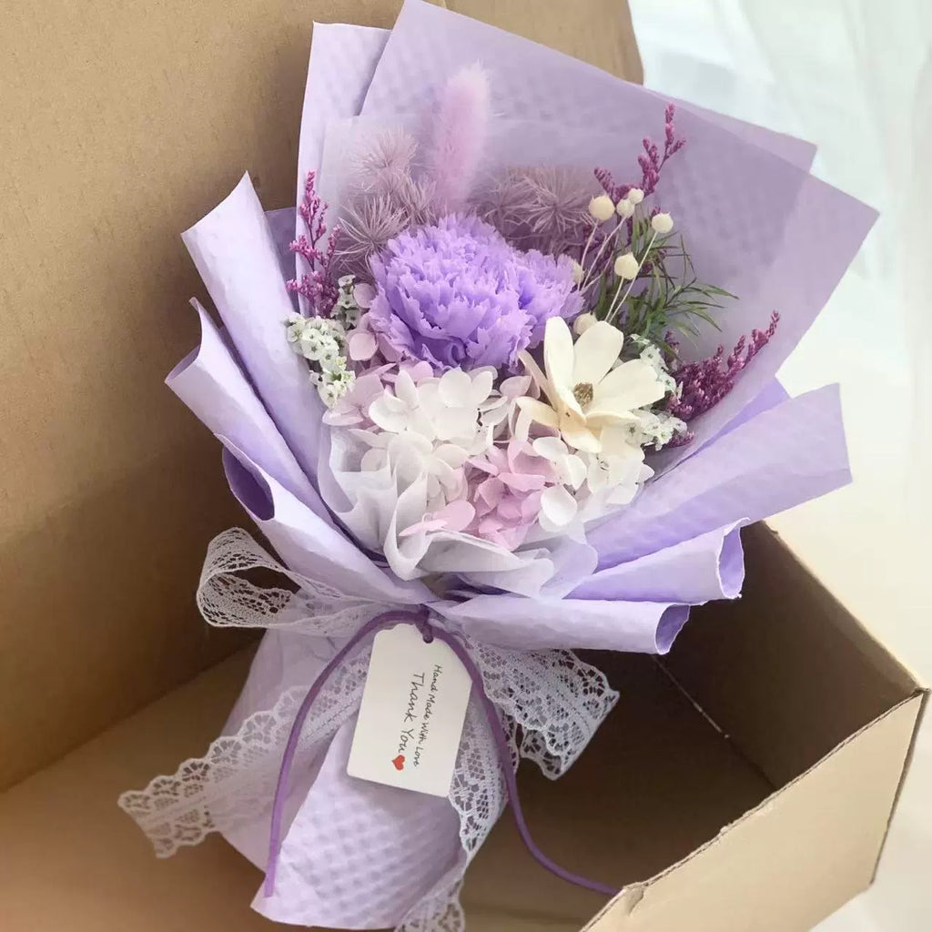 材質:仿真花+永生花 重量:70g 花束尺寸:12*26cm 產地:中國