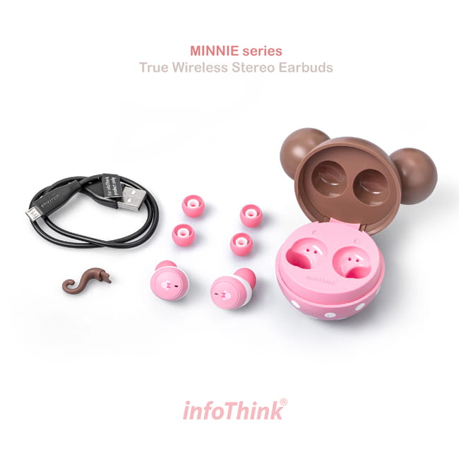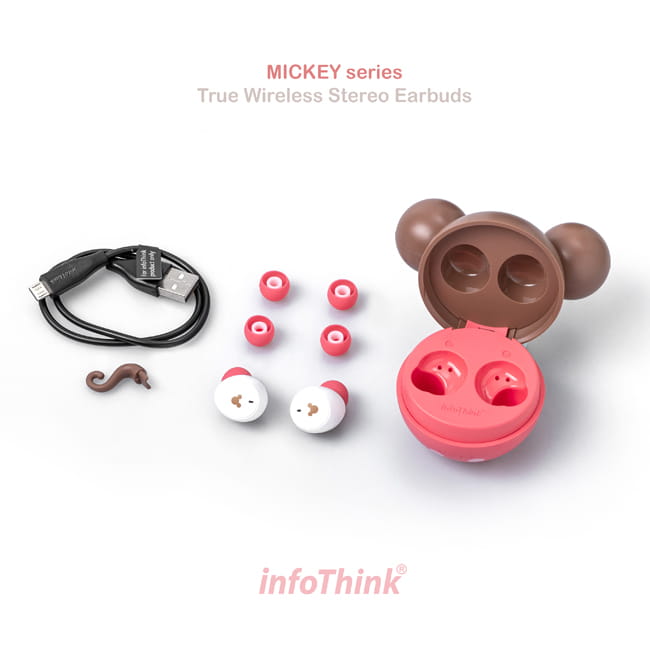 .迪士尼正式授權 .米奇立體可愛充電艙造型設計 .採用瑞昱藍牙晶片5.0,高音質傳輸、連線品質穩定 .開機即時智能配對,便捷操控按鈕、簡單易上手 .聆聽時間4hrs/ 充電艙電力12hrs .雙色可替換入耳式耳塞,配戴穩定、舒適、無負擔 .麥克風收音清晰,RCV通話降噪、溝通無礙 .低延遲音訊傳輸、音場寬廣、沉浸感、空間感十足 .真無線輕量化設計,小巧便攜、享受聽音樂、追劇樂趣 .IPX4生活防水、防汗 產品內容: .充電艙x1 .耳機(左、右) x1 .充電線x1 .耳塞小(左、右) x1 .耳塞大(左、右) x1 .尾巴防塵塞x1
