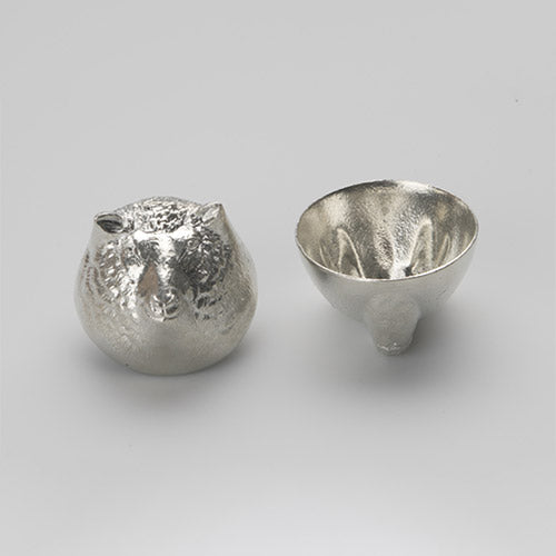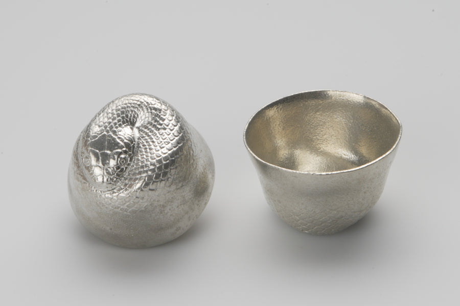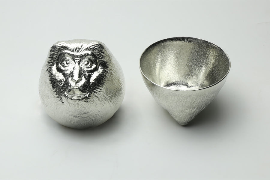 以生肖為題材並結合純錫和金箔的金箔生肖酒杯,是代表金澤的傳統工藝品。能作毎一年都會陸續替一個生肖設計一個清酒杯。現在已經有虎,兔,龍,蛇,馬,羊,猴,雞,狗9款囉。錫製品據說會帶來好運,且具有不生鏽及不易在空氣中氧化的特性。除了非常適合拿來贈送屬於親朋好友生肖的生肖酒杯,也有人樂在收集12年份的各種生肖酒杯喔。容量約50cc。 錫導熱快,建議冷飲避免燙傷。 請勿使用於酸性飲料以避免產生腐蝕。 使用後請用軟布或海綿搭配廚房用中性清潔劑洗淨。 為避免在表面留下刮痕,請勿使用鬃刷或含有顆粒的清潔劑。 光澤感消失時擦拭市售的金屬亮光劑或齒粉、小蘇打等物品就能恢復光澤。 低熔點,請勿放置於火源附近。 請勿使用於微波爐。 請勿放入冷凍庫,以免錫杯變色或變形。 請勿使用於洗碗機或烘碗機。 本商品無開放試用,因為無法再賣給下一個消費者,請支持好設計。 【錫是?】 錫不易氧化且具有抗菌的特性,對人體無害;是僅次於金、銀的貴金屬。 自古以來錫器有「放入錫器裡的水不易腐壞」,或是「能去除酒的怪味,讓酒變得更好喝」等說法,因此被當作酒器或茶具等使用。能去除酒或飲料的酸味或澀味而變得更好喝順口。