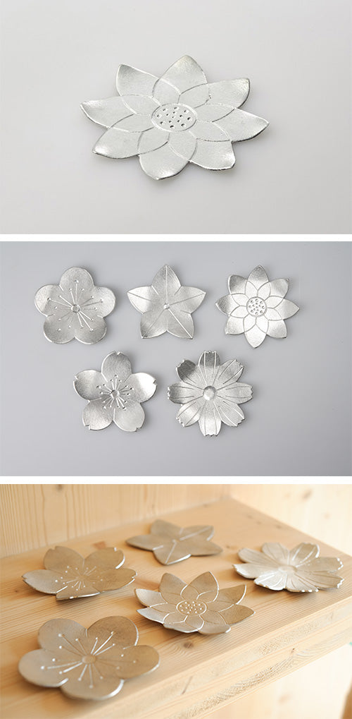 本製品為100%純錫製成,讓您享受自由彎折、變換造型的樂趣。彎折花瓣後可當作日式點心盤或是杯墊、茶托、飾品盤、肥皂盒等多方使用。能體驗鑄造物觸感,洋溢職人手作工藝的單品。共有梅花,櫻花,桔梗,波斯菊,蓮花5款。 錫導熱快,建議冷飲避免燙傷。 請勿使用於酸性飲料以避免產生腐蝕。 使用後請用軟布或海綿搭配廚房用中性清潔劑洗淨。 為避免在表面留下刮痕,請勿使用鬃刷或含有顆粒的清潔劑。 光澤感消失時擦拭市售的金屬亮光劑或齒粉、小蘇打等物品就能恢復光澤。 低熔點,請勿放置於火源附近。 請勿使用於微波爐。 請勿放入冷凍庫,以免錫杯變色或變形。 請勿使用於洗碗機或烘碗機。 本商品無開放試用,因為無法再賣給下一個消費者,請支持好設計。