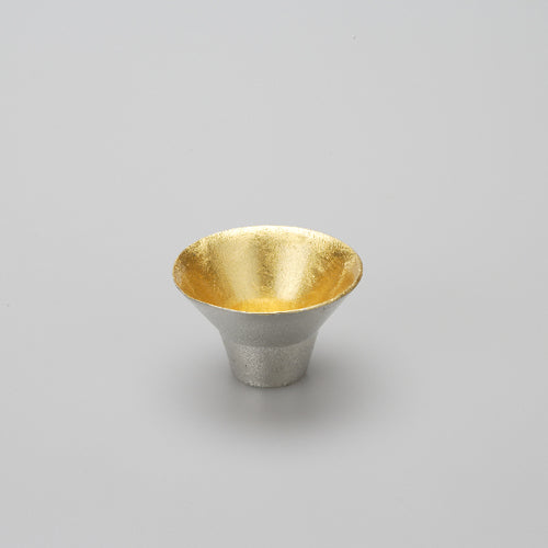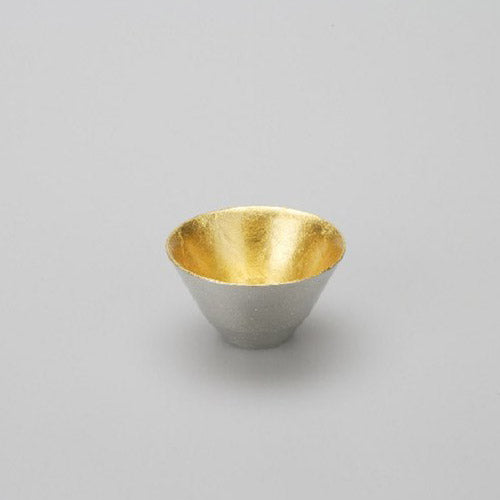 運用富山縣高岡市的傳統鑄造技術以100%純錫製造。 由於純錫的柔軟特性無法使用機器製造,必須仰賴有經驗的職人們一件一件手工製作後再結合金澤傳統工藝技術,於酒杯内側一層一層貼上金箔的繁複工序後,溫潤華美的純錫金箔喜宴杯才得以誕生。 杯子底足比杯口小而高的設計搭配喜慶祝福的品名,與您或您的親友的婚宴、喬遷等人生精彩時光相得益彰。 由於錫的熱傳導率高適合溫酒;或將酒杯放進冰箱1-2分鐘即可輕鬆享用冷酒。容量約30cc。