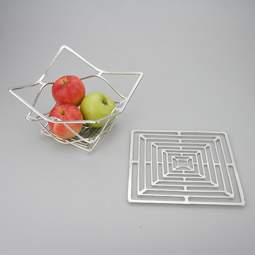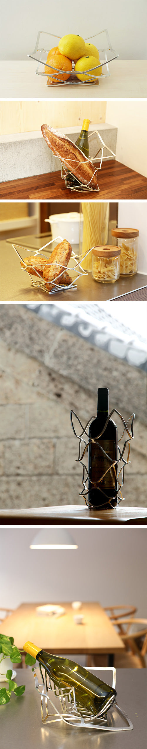 富山縣高岡市傳統「鑄物」產業的加工技術下培育出的鑄造技術為基礎,使用本錫製作而成。本製品將錫柔軟的特色發揮到最極致,藉由拉扯或彎曲就可以改變置物籃的外型,達到多向利用。可當作麵包或水果籃使用,或是在籃子中放入花瓶(或是蓋在花瓶上)當作裝飾品,拉長後再往下折就能變身為燈罩等,可隨心所欲自由變換。 錫導熱快,建議冷飲避免燙傷。 請勿使用於酸性飲料以避免產生腐蝕。 使用後請用軟布或海綿搭配廚房用中性清潔劑洗淨。 為避免在表面留下刮痕,請勿使用鬃刷或含有顆粒的清潔劑。 光澤感消失時擦拭市售的金屬亮光劑或齒粉、小蘇打等物品就能恢復光澤。 低熔點,請勿放置於火源附近。 請勿使用於微波爐。 請勿放入冷凍庫,以免錫杯變色或變形。 請勿使用於洗碗機或烘碗機。 本商品無開放試用,因為無法再賣給下一個消費者,請支持好設計。