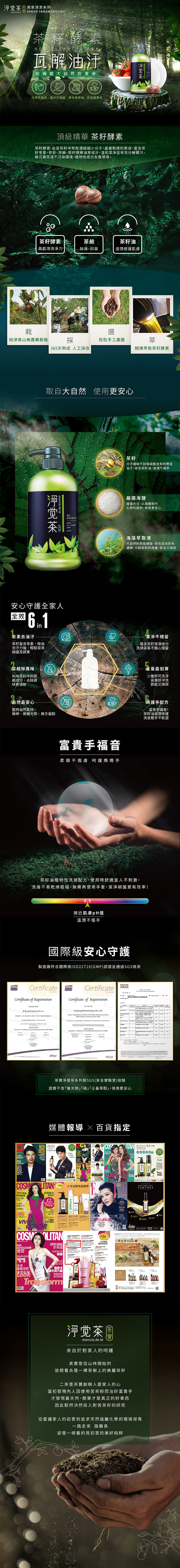 茶寶經典居家品牌-淨覺茶,精煉萃取苦茶籽精華,並濃縮為深茶色半透明茶籽液,