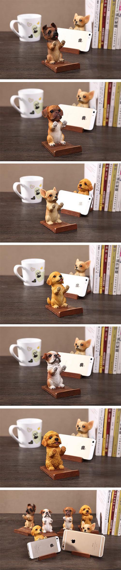 可愛狗狗桌面手機座,採用高檔環保樹脂材質,耐磨損,不易髒;適合等所有智能手機,橫著還是豎著擺放都可以,非常便於觀看電影、玩遊戲、充電等;小狗狗造型美觀逼真,形像生動活潑,產品做工細膩精緻,即美觀又實用,創意又有趣,非常適合家居裝飾,辦公桌擺設,創意禮品,生日禮物