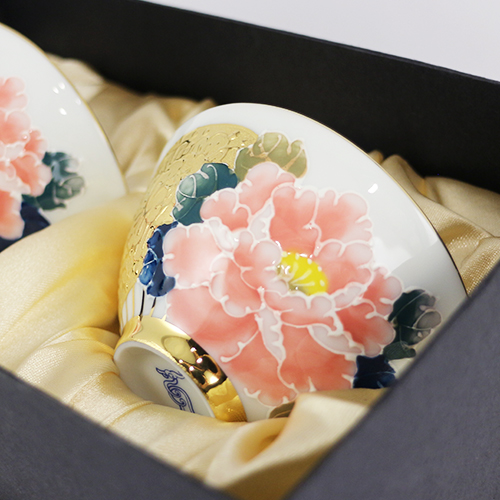 辰鼎窯 廣結善緣大飲杯對杯-粉紅牡丹