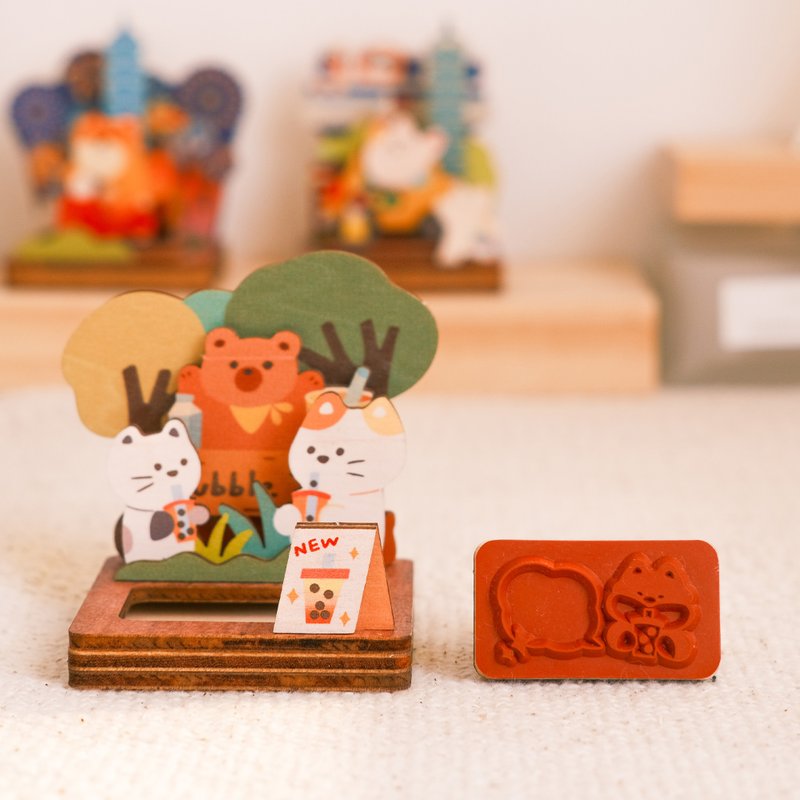 遊木時光 woodtime【拼風景印章收納組-珍珠奶茶】台灣紀念品 / 印章 / 名片卡納