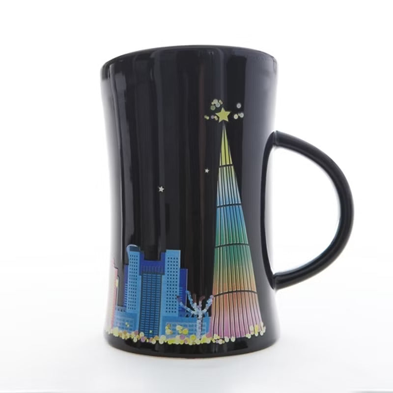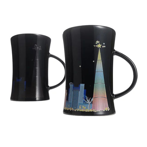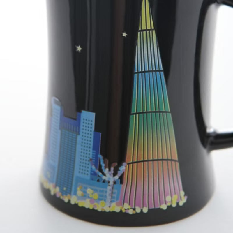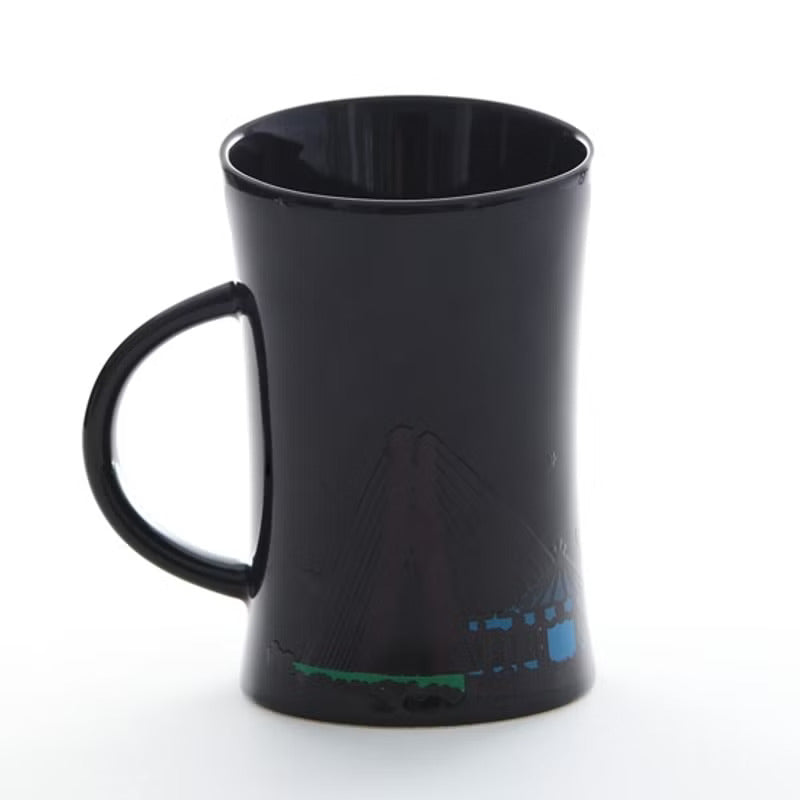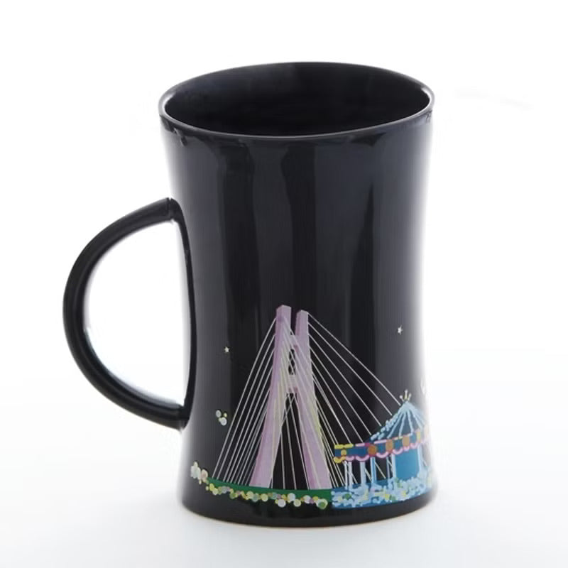 新北市璀璨夜景變色杯 Color Changing Mugs with New Taipei City’s Glorious Night Scene 材 質 / Material:瓷器/ Porcelain 尺 寸 / Size:Φ 80 x H 130 mm 容 量 / Capacity:380 ml 色 彩/ 樣 式:霧黑 技 術/ Technique:變色油墨 / Thermo-chromic ink Decal 形體設計:高才虔 / Shape designed by Tsai-Chien Kao 圖騰設計:黃郁淳 / Graphic designed by Coka Huang