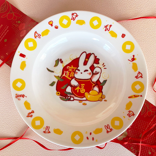 陶緣彩瓷 銀兔滿堂 大吉大利- 單入8吋湯盤 (附提袋)