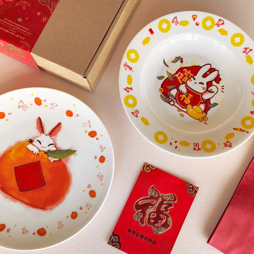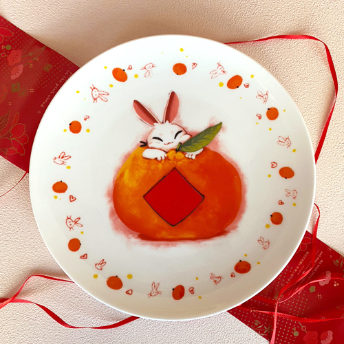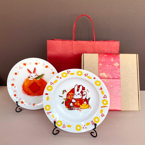 陶緣彩瓷 銀兔滿堂 -大吉大利 單入8吋盤 (附提袋)