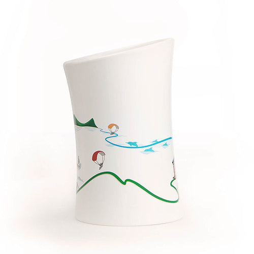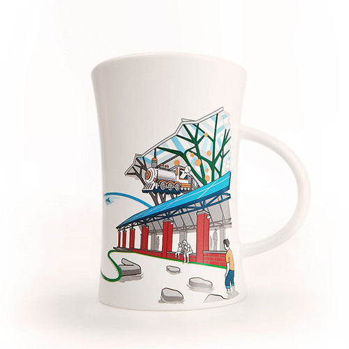 材 質:瓷器 尺 寸:Φ 80 x H 130 mm 容 量 :380 ml 色 彩:霧面白 技 術:變色油墨 形體設計:高才虔 圖騰設計:鄒 雲