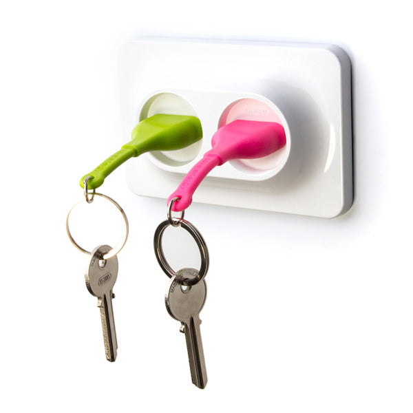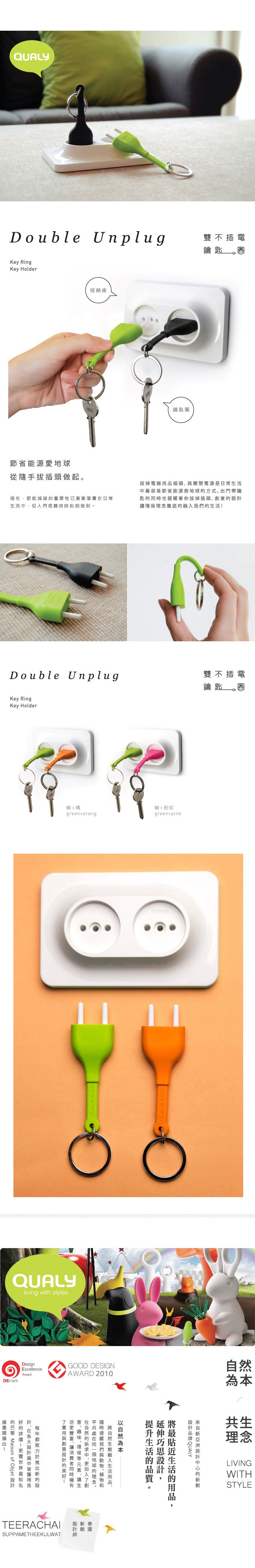 出門帶鑰匙的同時也提醒著你拔掉插頭! 雙不插電鑰匙圈一定會提醒你出門前記得拔掉插頭,創意的設計讓環保理念徹底的融入我們的生活。同時它也是一個精緻又實用的鑰匙圈,可用3M膠條或螺絲固定於任何牆面上,再也不會找不到鑰匙了! 注意: 貼壁紙的牆面請不要使用泡棉膠黏貼,附著效果較不佳。