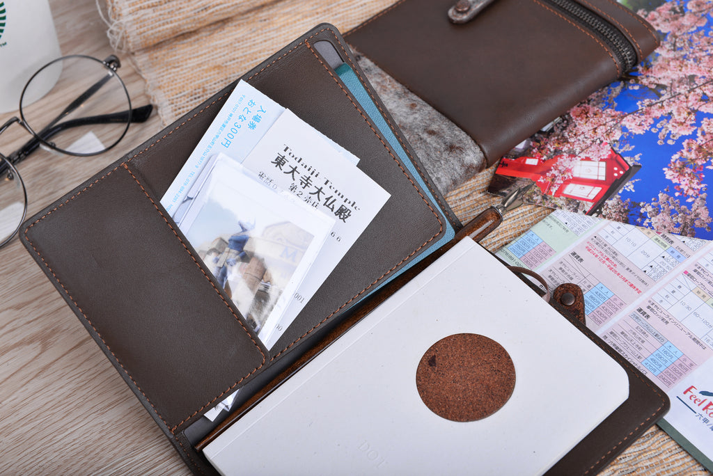 「香伴」是以天然植物花草發展而成的系列商品。 讓使用者在使用的同時能感受到天然花草散發出淡淡的香味, 期望讓香氣伴隨在你我周遭,帶領我們一同享受視覺×嗅覺×觸覺的三重饗宴 ! ◆可搭配香伴A6空白筆記本作為書套使用。 ◆出國旅遊好幫手,輕鬆記帳紀錄。 ◆正面拉鍊可放入零錢及鈔票,替您好好保護錢財。 ◆裡面可放入多張名片、卡片、票券、筆記書、護照、明信片、地圖等。 ◆正反面都使用霧面牛皮。