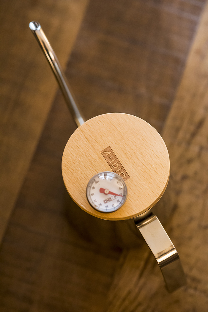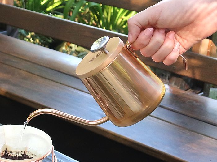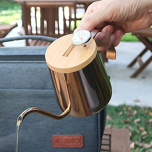A-IDIO 人文時尚手沖細口壺350ml(含溫度計、木蓋)-香檳金