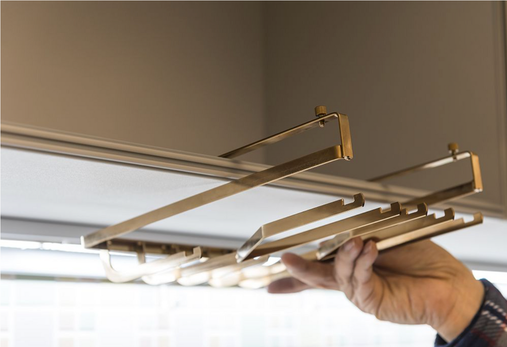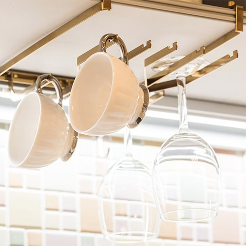 我們選擇使用高品質的不鏽鋼材質,並進行表面鍍鈦處理。這使得櫥櫃吊杯架具有耐刮、耐侵蝕的特點,有效防止生鏽,經久耐用。