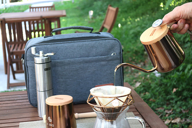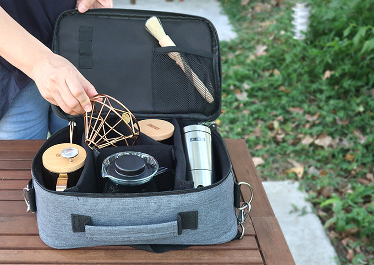 恣意搭配,富有設計感的手沖咖啡組 不只是喝杯咖啡,而是享受了一個美好的咖啡時光 將所有的器具裝進專屬旅行袋內 旅遊、野餐、露營、辦公,隨時隨地皆能享受一杯精品香醇咖啡