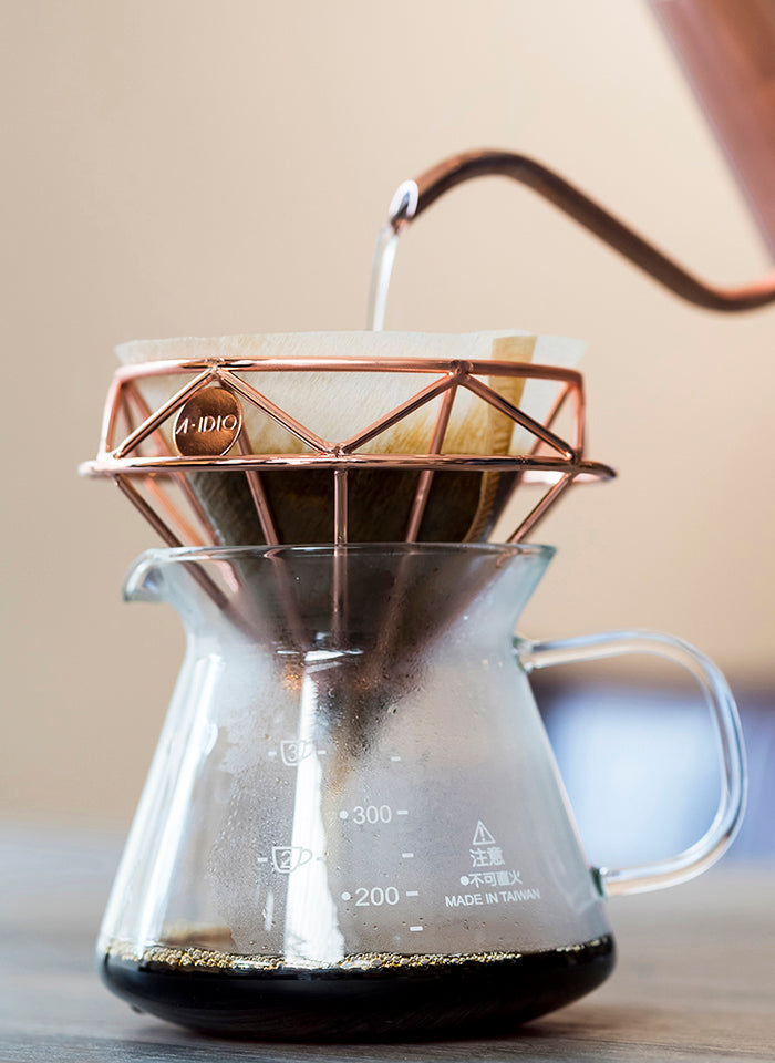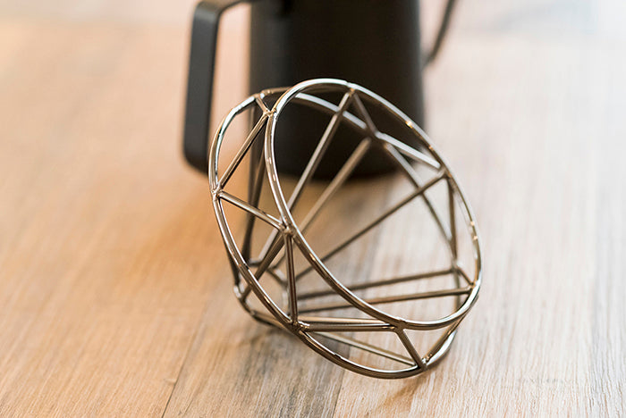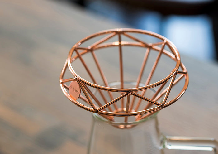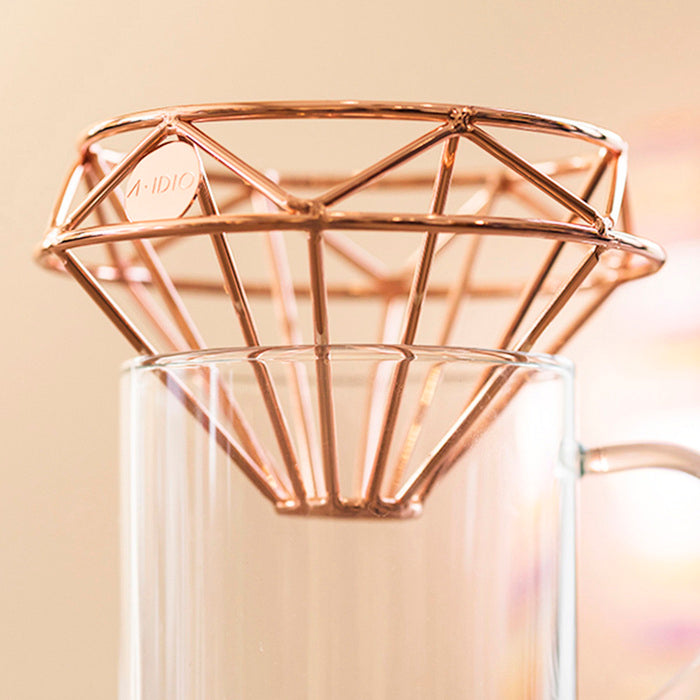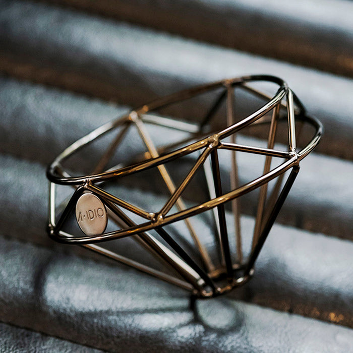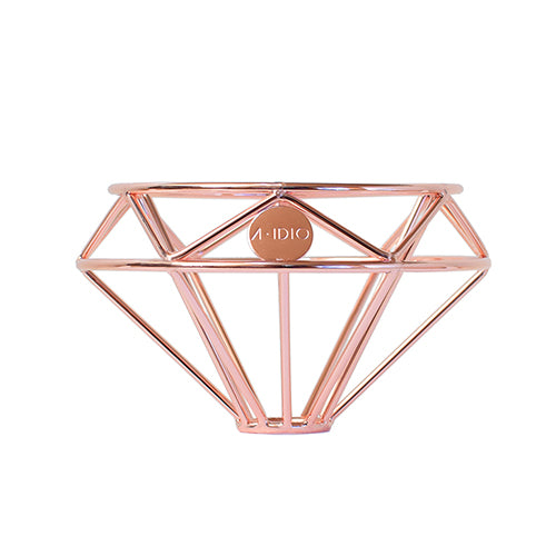 【拿下兩次金點設計獎的設計師之經典作品】 一顆匠心獨具的璀璨鑽石,同時也是輕巧的咖啡濾杯。 不但驚艷吸睛破表,其所沖煮出來的咖啡香氣和果酸鮮明,口感清爽舒適兼顧了美感與功能的精彩設計 l 世界第一個無需底座的咖啡濾杯 獨創雙層支架濾杯,外層代替傳統底座,可架在任何咖啡壺及杯口之上;內層卻完美的與V型濾紙服貼。咖啡萃取液便沿著濾紙緩慢流下。 l 璀璨鑽石造型 匠心獨具 精心設計的鑽石外型,為純手工製作,經過焊接拋磨,電鍍上釉處理,經過重重工序,才能呈現耀眼的鑽石濾杯。更為你帶來與眾不同的咖啡新體驗。 l 流速順暢穩定不堵塞 其縷空架構,沒有杯壁的束縛,可讓空氣釋放自如,流速順暢穩定,不會造成堵塞,能讓咖啡均勻的萃取,不管新手還是玩家,都能輕易的沖煮出精品咖啡的純淨風味。 l 體積輕巧易於保養清洗 不同於傳統的濾杯,少了底座,外型更加簡潔,並易於收納、攜帶及清洗。貼心附贈一個黑色絨布袋,可以讓你帶著它四處華麗。 l 安全堅固耐用 為了確保食品安全,所有內外材質皆通過台灣SGS 檢驗合格,讓你享受美好咖啡時光之餘也能用得安心。
