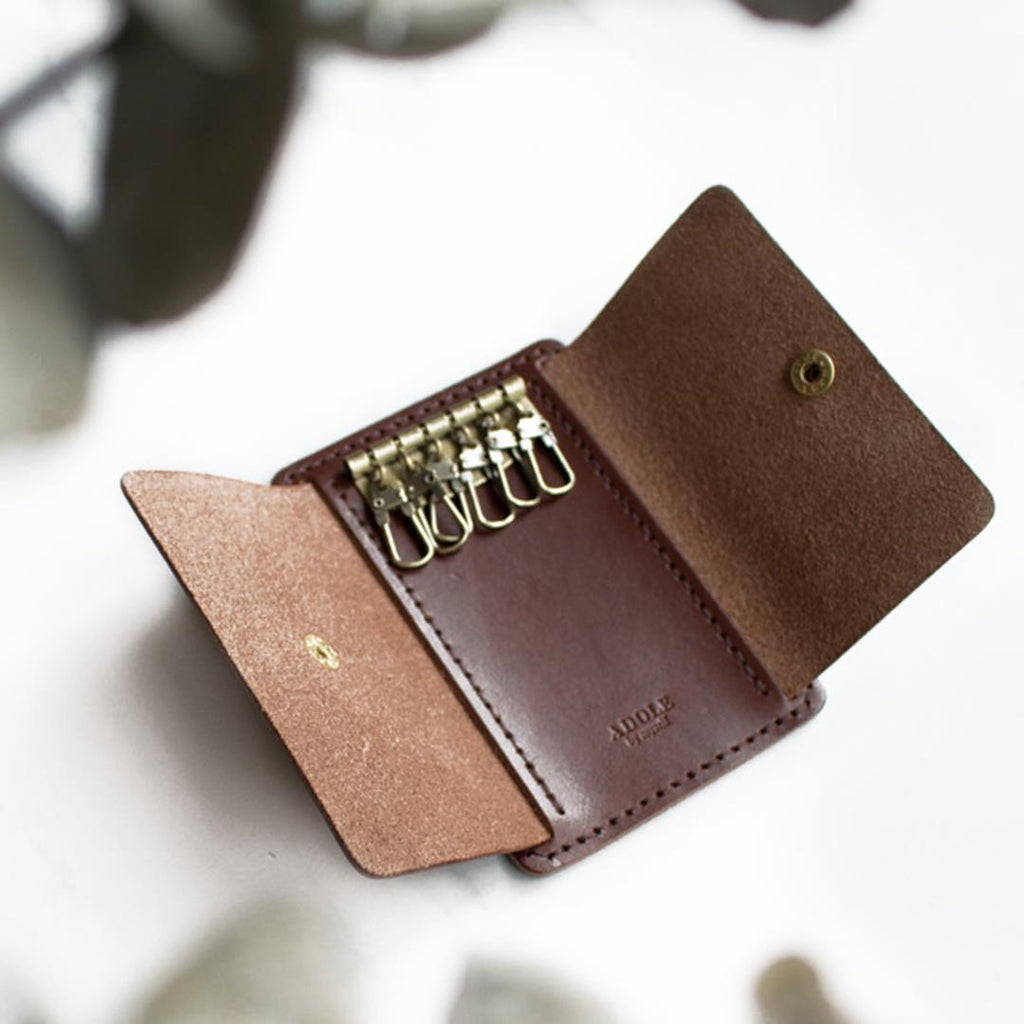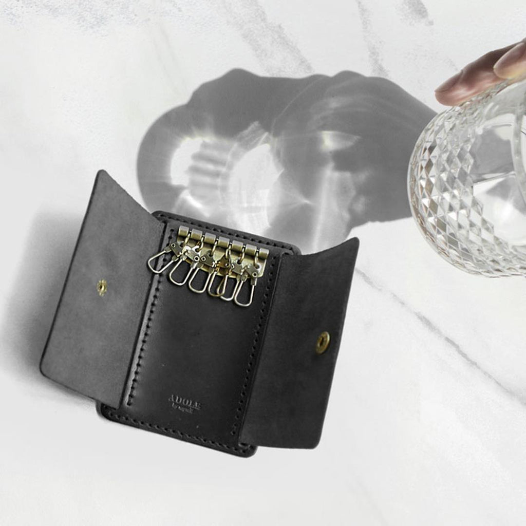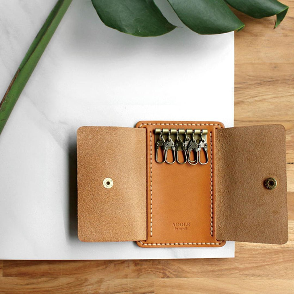 含有6個鑰匙圈,壓扣式鑰匙圈設計,方便操作卻不易脫落,背面簡易夾層,可做卡夾使用