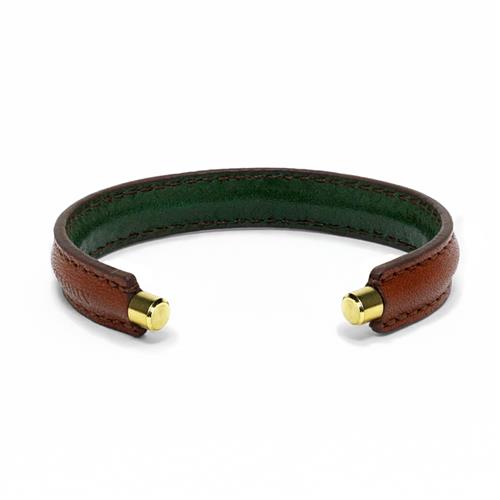 以圓形黃銅管為基底,並於外層包覆雙色頭層牛皮