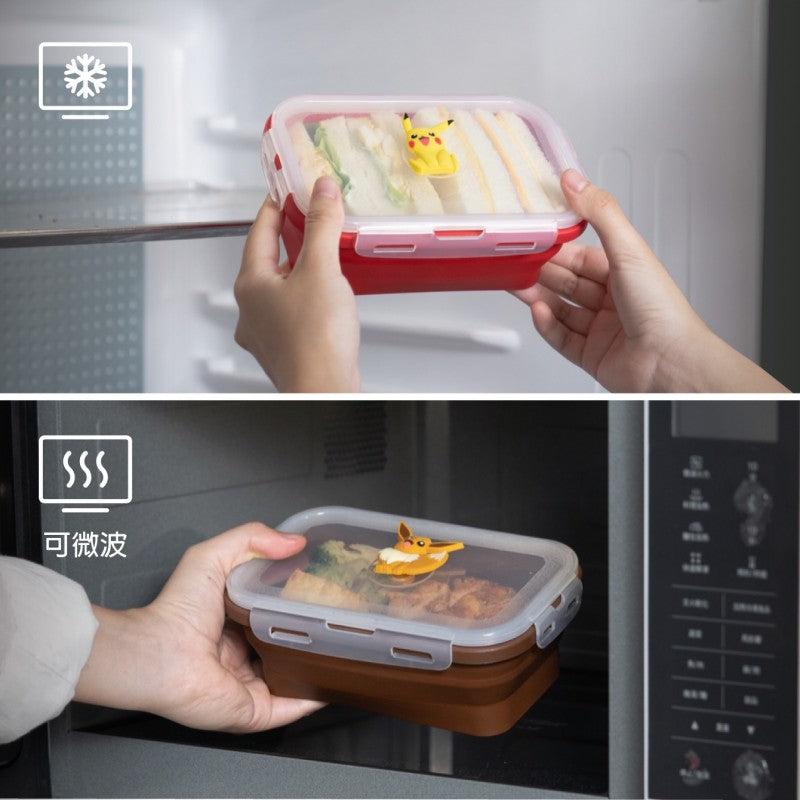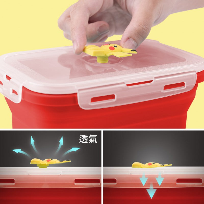 與寶可夢一起享受用餐時光吧! 寶可夢矽膠摺疊保鮮盒,摺疊設計輕便攜帶與收納,讓可愛的寶可夢陪你度過每個愉快的用餐時光~ - 折疊式矽膠保鮮盒,好收納、攜帶 - 透氣塞真空功能讓食物保鮮保水 - 可愛角色透氣塞,可依用途做分類 - 全件輕鬆拆裝,方便清洗 -不含塑化劑、雙酚A;耐酸耐鹼、耐高低溫差 *微波加熱時,請打開卡扣及拉起透氣塞 *盛裝湯品等液體時,請保持平放,避免擠壓,以免溢出 *使用前請檢查產品是否有破損,如有破損,請停止使用