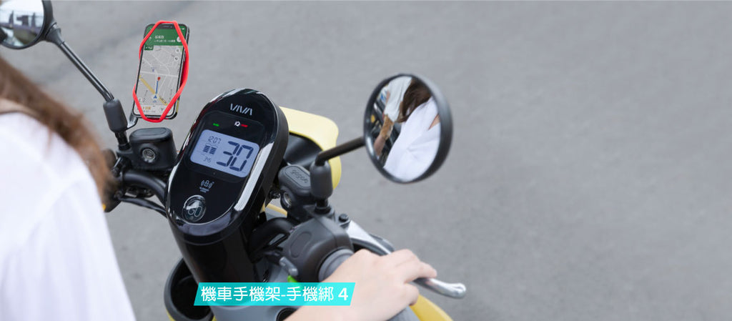 - 機車手機支架,騎機車時快速拆裝手機 - 我們擁有專利「綁接系統」,可以讓手機秒速旋轉、拆裝 - 運用左右旋轉45度即可拆卸,垂直 / 水平旋轉即可固定 - 高拉力綁繩可以緊緊抓住 4.7 吋到 7.2 吋各牌手機 - 單車手機綁,吸震、保護手機,也可在自行車手把使用 - 軟、硬兩件式設計、彈性耐用 - 矽膠材質能分散路面震動應力,保護手機,降低手機因震動損壞的風險 - 產品已內含 金屬支架、塑膠固定把、旋鈕螺絲、14號板手 時尚 方便 機車手機架 簡單安裝 5 步驟 1 將金屬支架、塑膠固定把、旋鈕螺絲三個零件組合 2.鬆開機車後照鏡固定螺絲 3.將組裝完成機車手機架,裝回摩托車後照鏡固定螺絲、調整合適角度、鎖緊 4.旋鈕螺絲可調整機車手機架之角度 5.綁上單車手機綁,即可固定手機