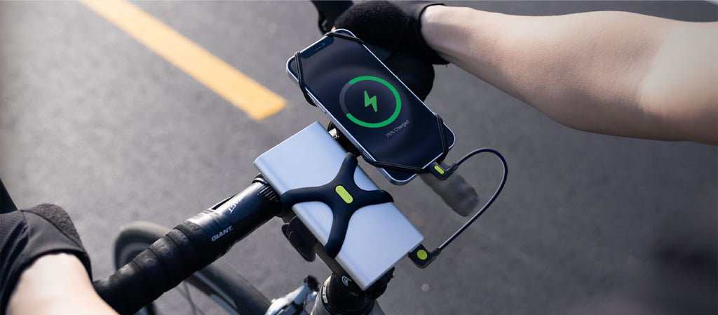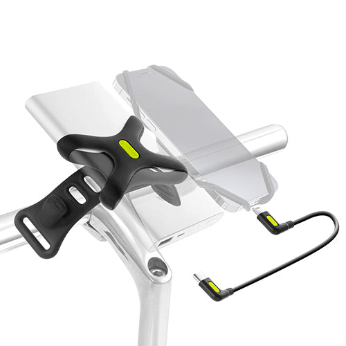 自行車手機充電套組:60 g 本體尺寸 L型轉角線:W28 × H250 × D6mm 收納包:W60 × H60 × D11mm 電源綁:W62 × H62 × D18mm 單車綁繩:W174 × H39 × D17mm 材質:塑料, 矽膠, 金屬 包裝內容物 自行車手機充電套組: L型轉角線*1 迷你線材收納套*1 單車綁帶*1 電源綁*1