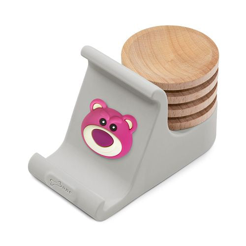 - 擴散香氛的手機座 - 手機可橫放、直立,亦可收放名片 - 原木毛孔吸收精油,香味持續擴散,培養自己的香味 - 可愛角色逗扣,可以更換不同角色(選購)