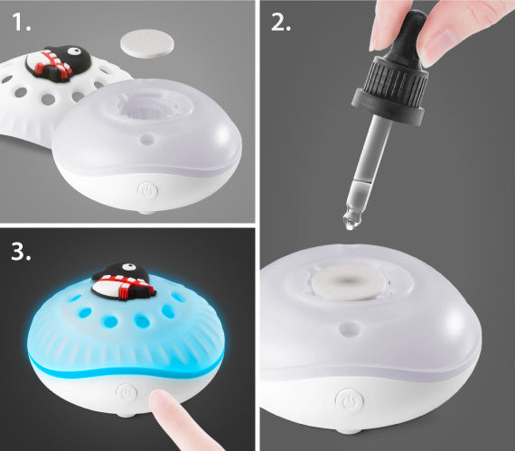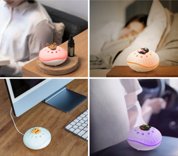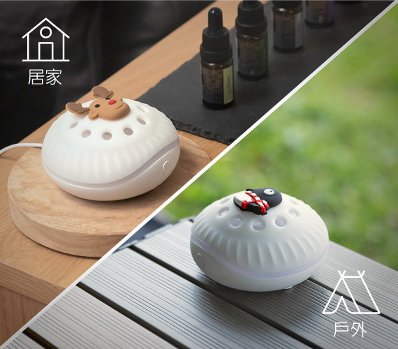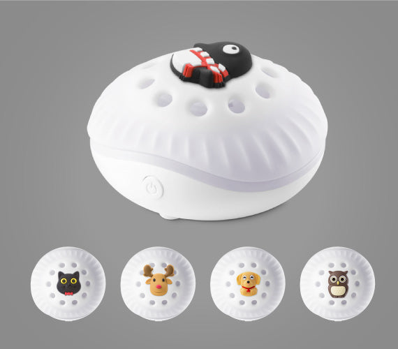*可添加精油、香水,送風於空間中 *內附一條USB線,可插電或使用乾電池,獨立供電不受空間限制 *一鍵啟用,定時一小時運作 *可切換兩種工作模式:情境模式、睡眠模式 *可愛角色逗扣可替換、可選購 *附10片替換式棉片 *環保矽膠上蓋可水洗、耐髒汙