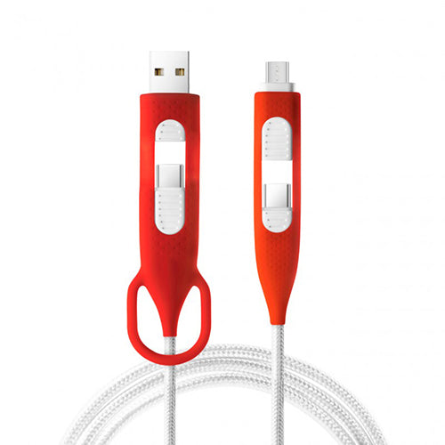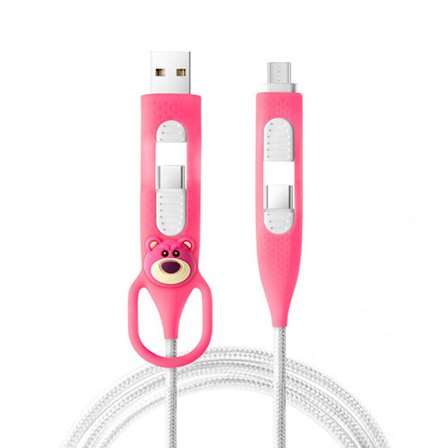 -手機.電腦.充電.傳資料,一條抵四條,一線搞定 -雙向USB-C接頭可轉換USB-A、Micro USB的4合1充電傳輸線 -彈性轉接頭一體式不脫落設計 -可愛角色綁帶設計、聰明收線,調節使用長度 -尼龍編織線耐磨損、強韌有彈性 -可同時充電、傳輸資料,支援QC、PD快充