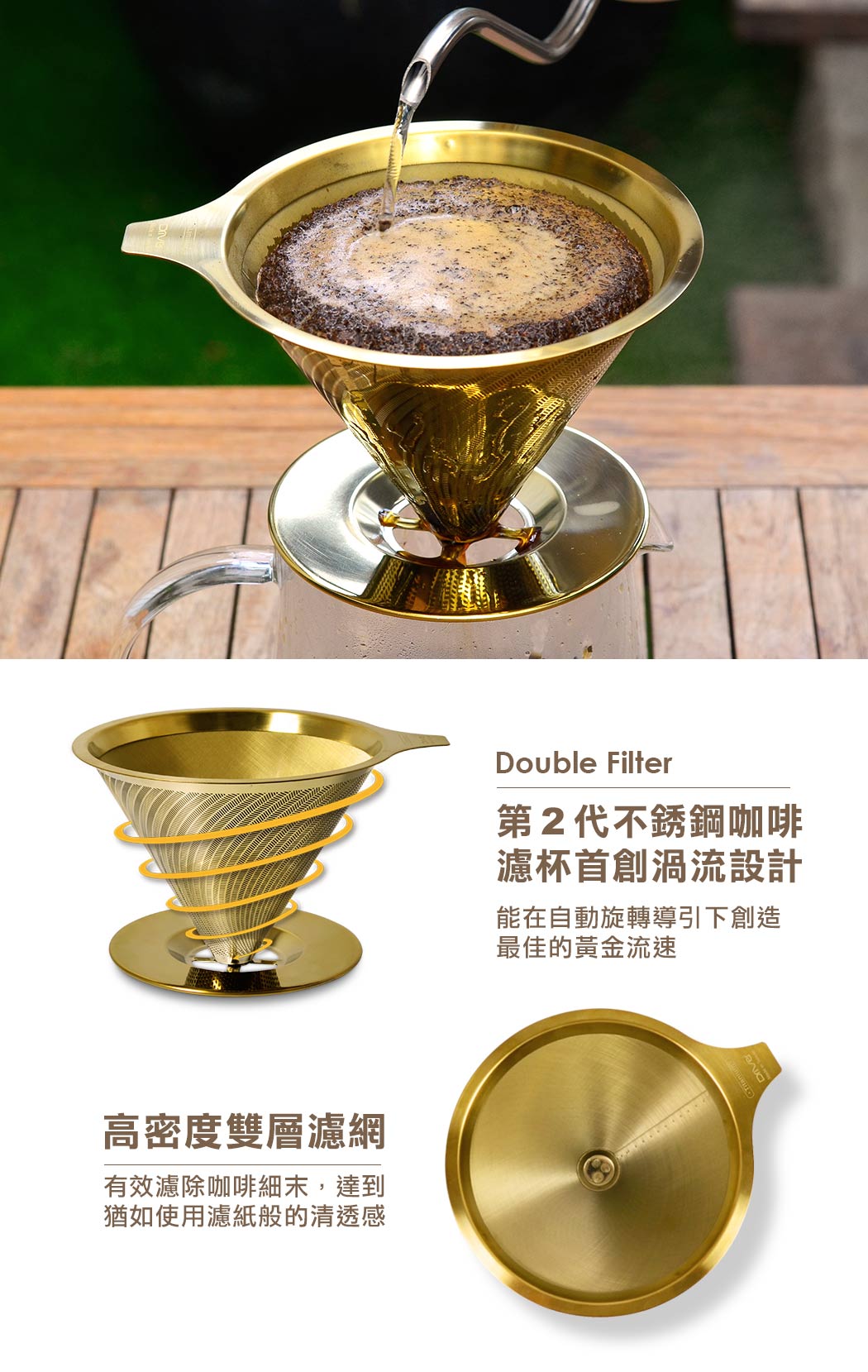.第二代不銹鋼咖啡濾杯首創渦流設計
