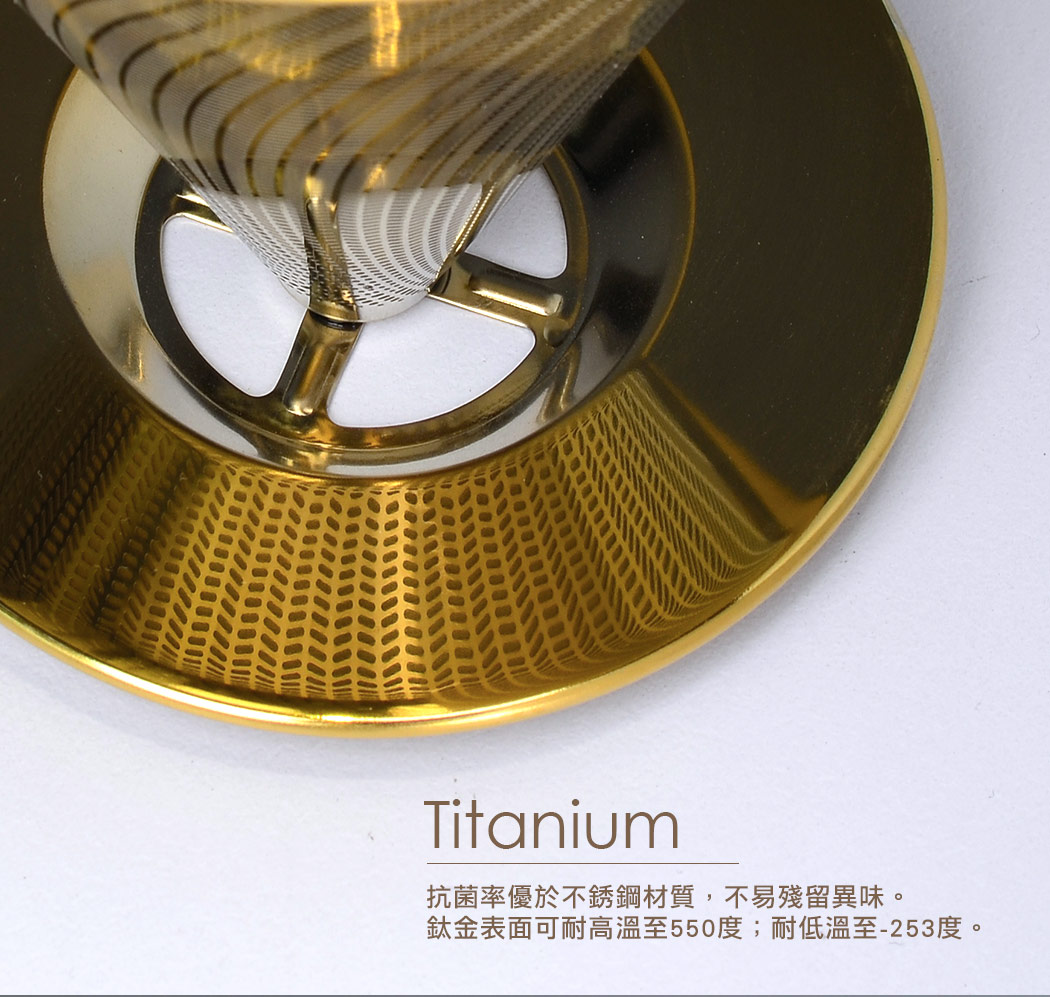 .材質:SUS304食品級高級不銹鋼表面鍍鈦、耐熱玻璃(可耐熱100℃)、PP