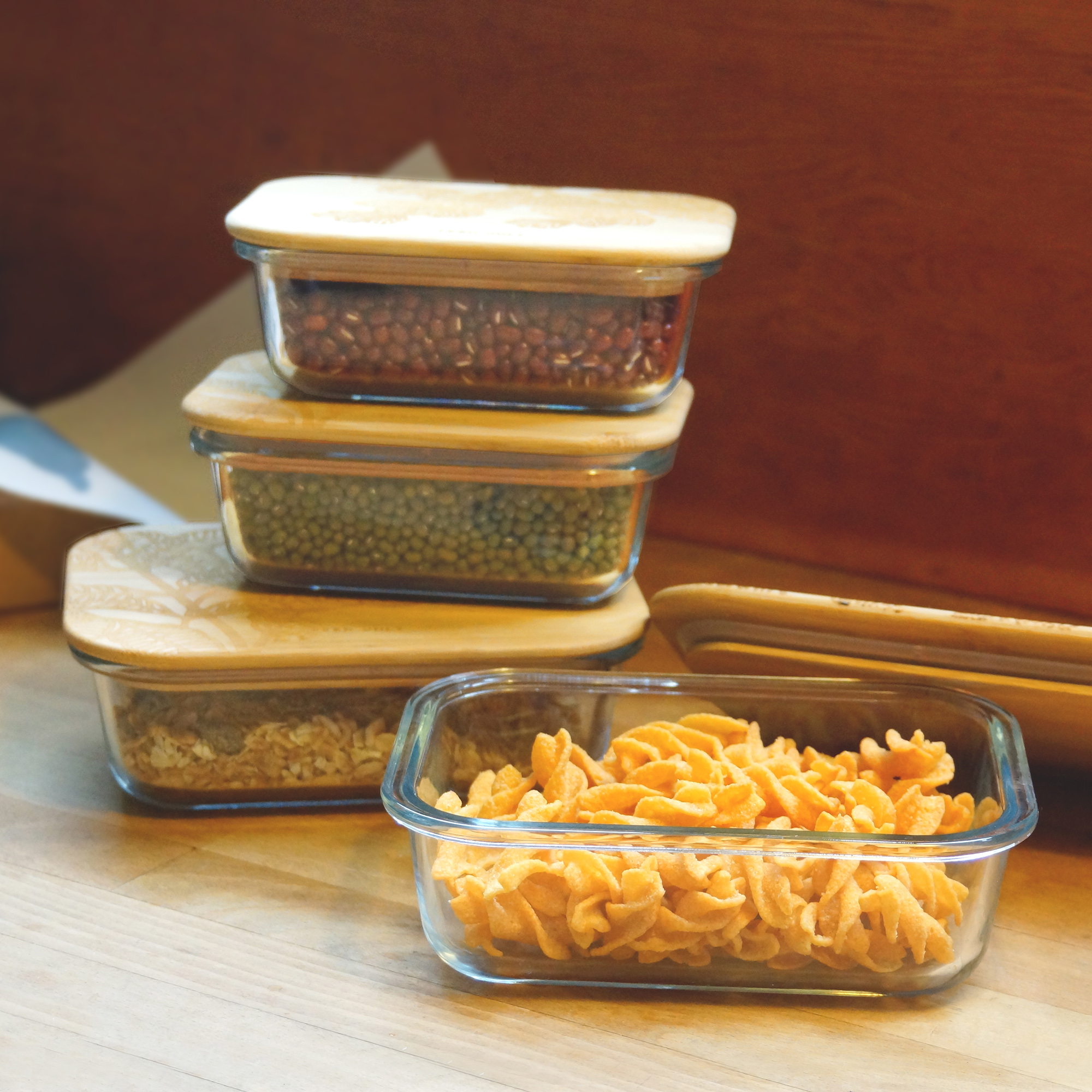 竹蓋玻璃便當盒: 小款-370ml, H5.2 x W14.7 x D10.5 cm