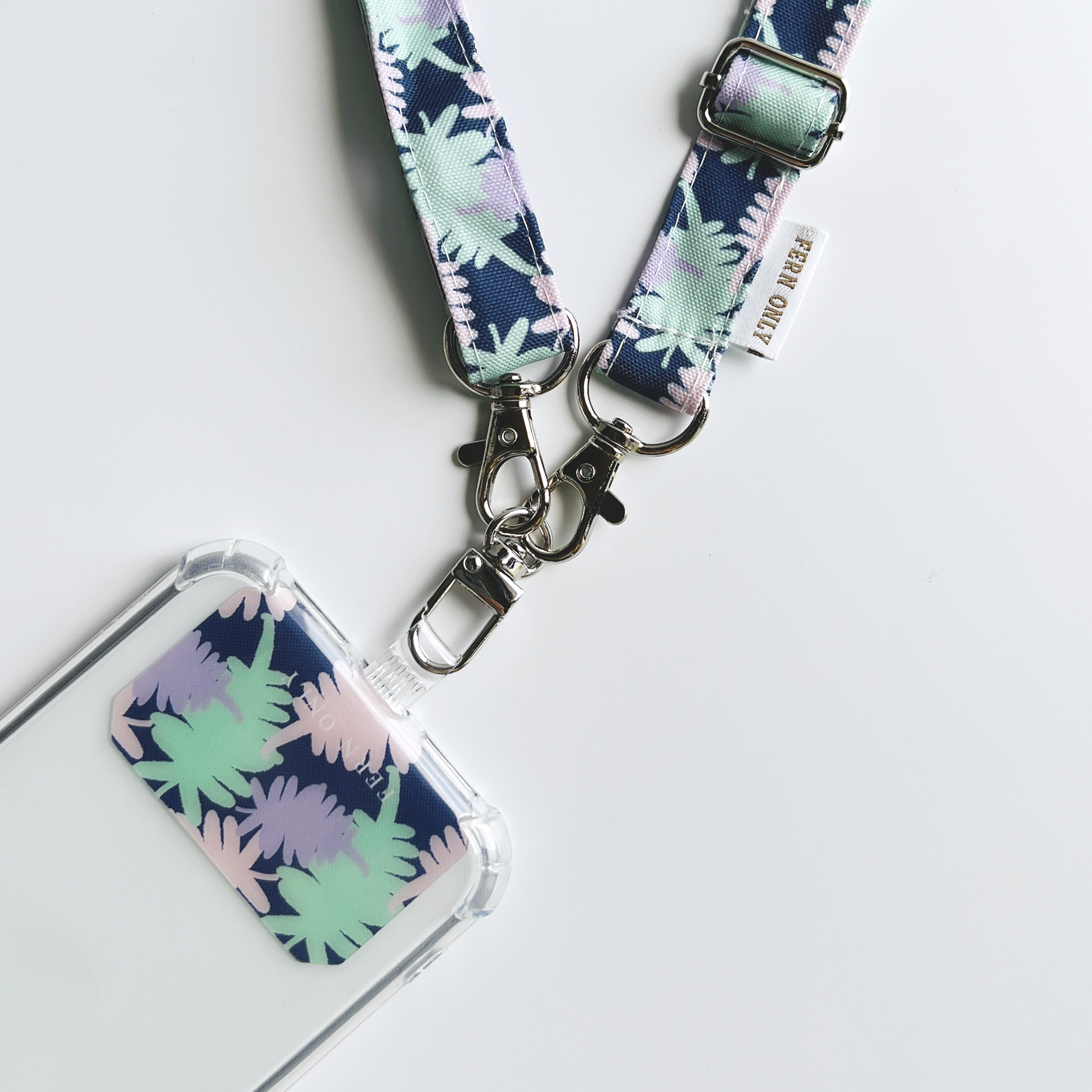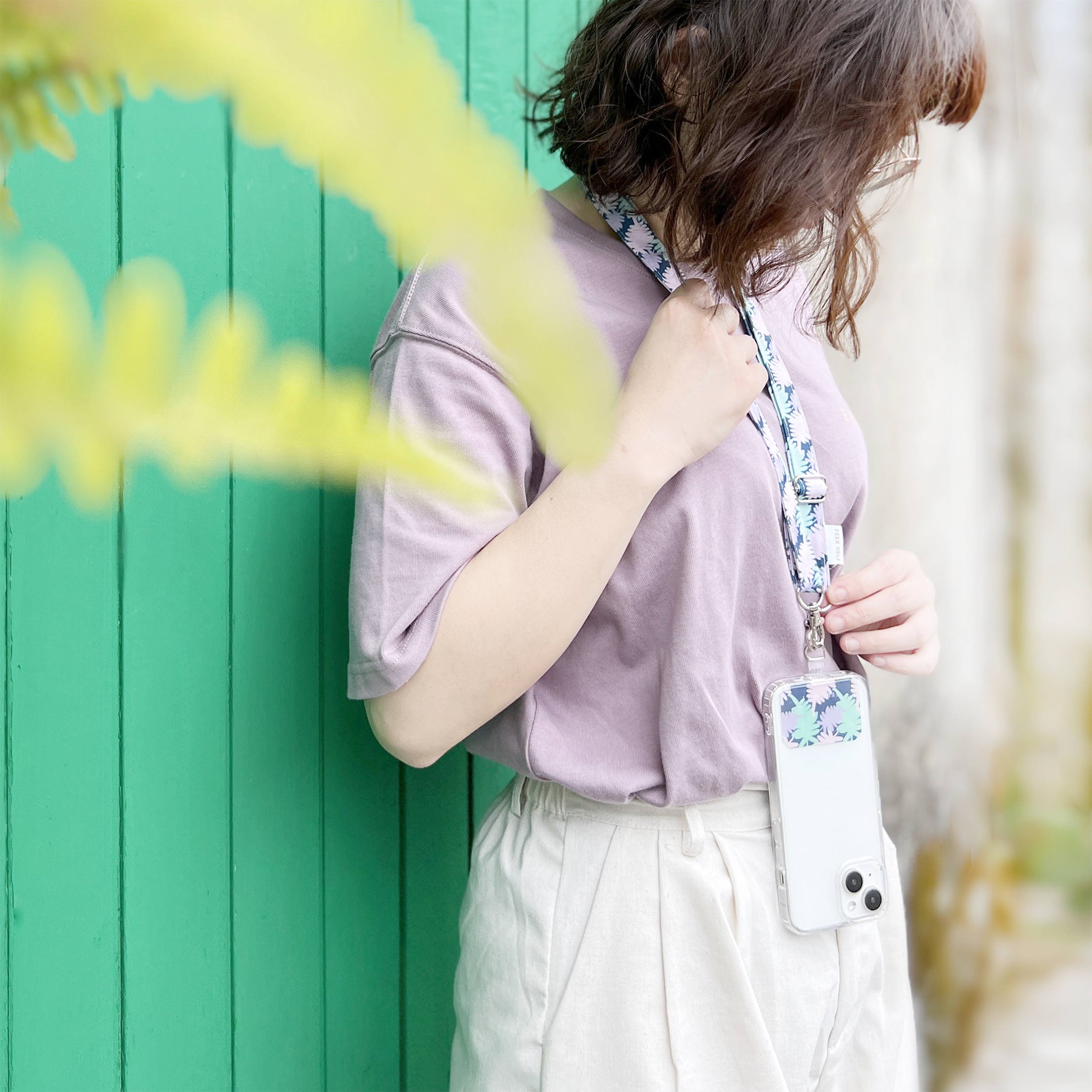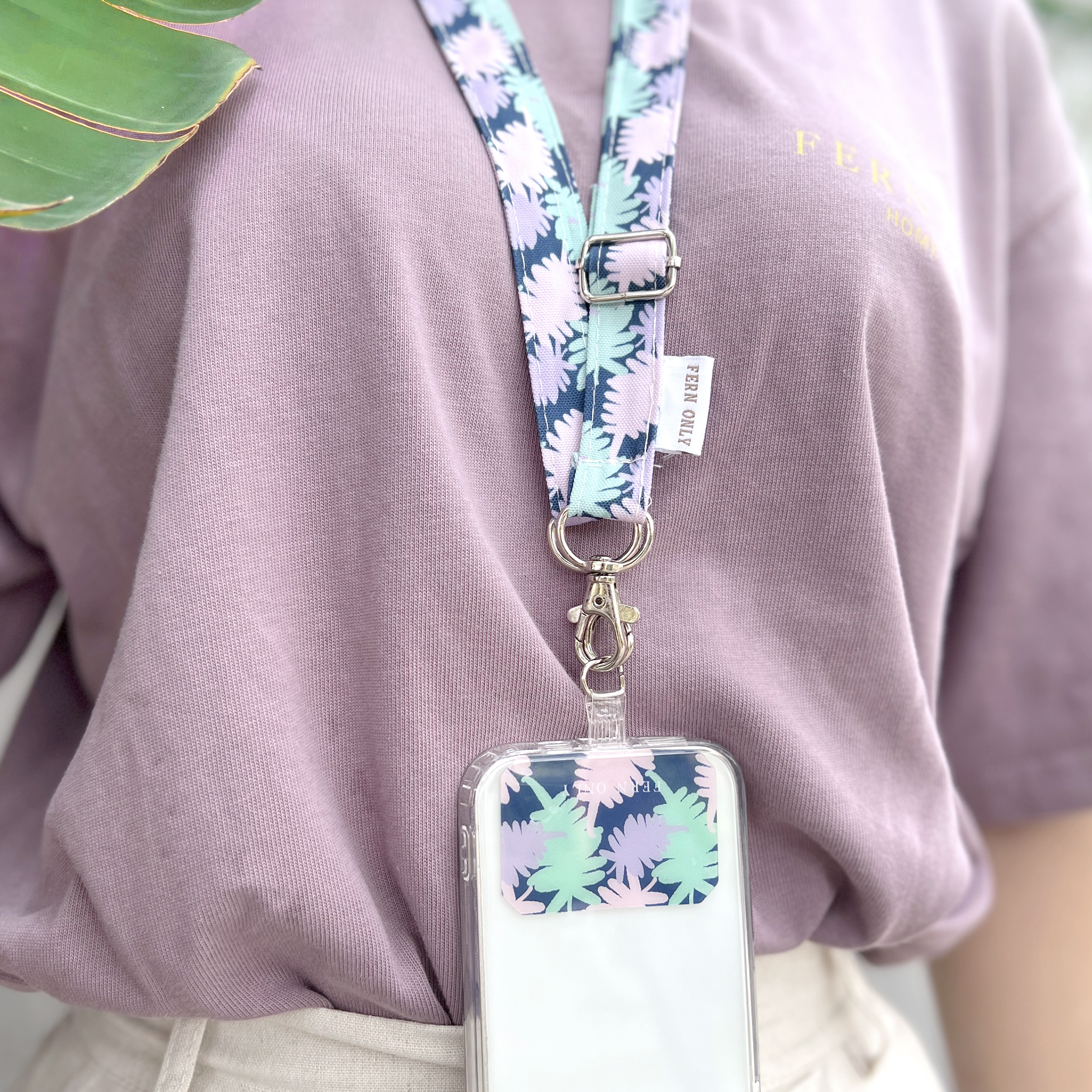 解放你的雙手,拍照OK! 導航OK! 跟另一半逛街牽手通通OK! 就用滿滿的蕨類印花圖紋,輕鬆裝上手機夾片&手機掛繩,將手機掛在胸前或側背通通OK!