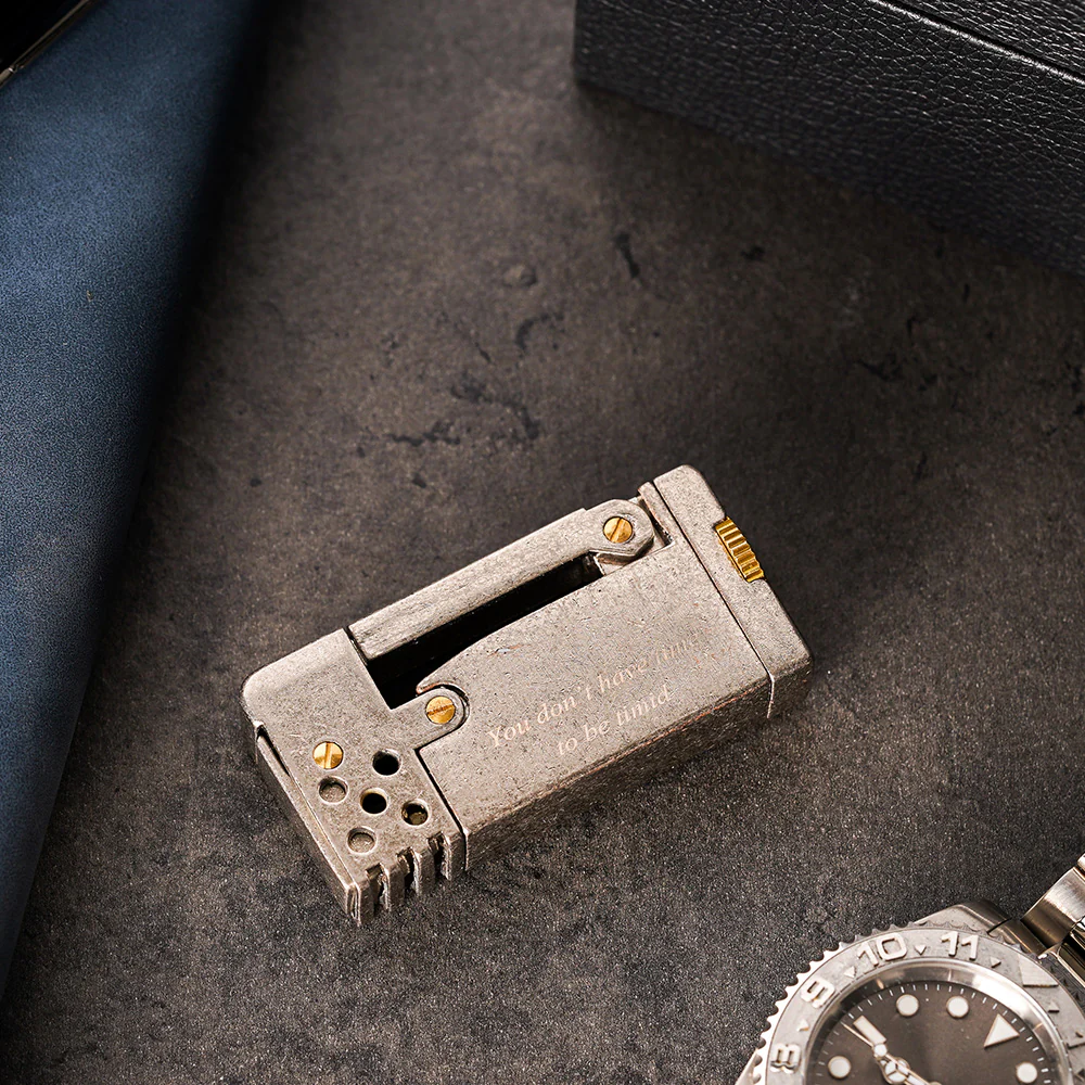 每個細節都經過精心雕琢,易於操作只需一個輕輕的轉動砂輪,即可瞬間點燃火源,透過煤油能提供源源不斷的火源,同樣也具備可客製化刻字的服務,較特別的是不限制行數,可大範圍雕刻文字,是一款不管自用或者送禮都非常合適的禮品