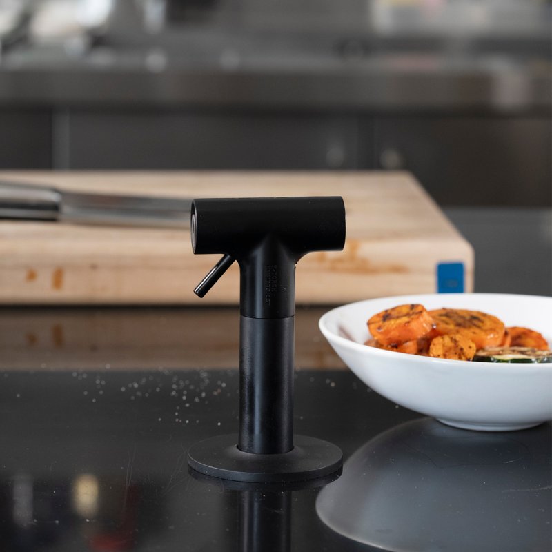 傳統打火機大多充滿機械感或肌肉感,然而越來越多使用打火機的場景與生活美學息息相關。浮現在腦海中的是一塊又一塊零碎的靈感拼圖,一個極簡的T字、一個扣扳機的動作、一個清脆的聲音、最好能夠站立。「雪茄噴槍」是一個概念起點,實際使用後,炙燒起來很過癮,點香氛更是瞬燃。