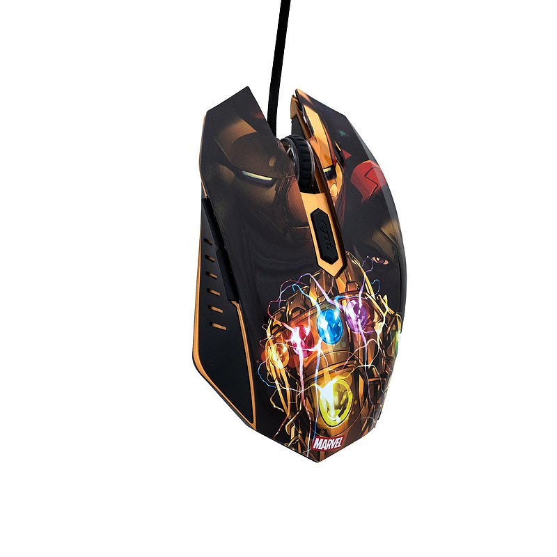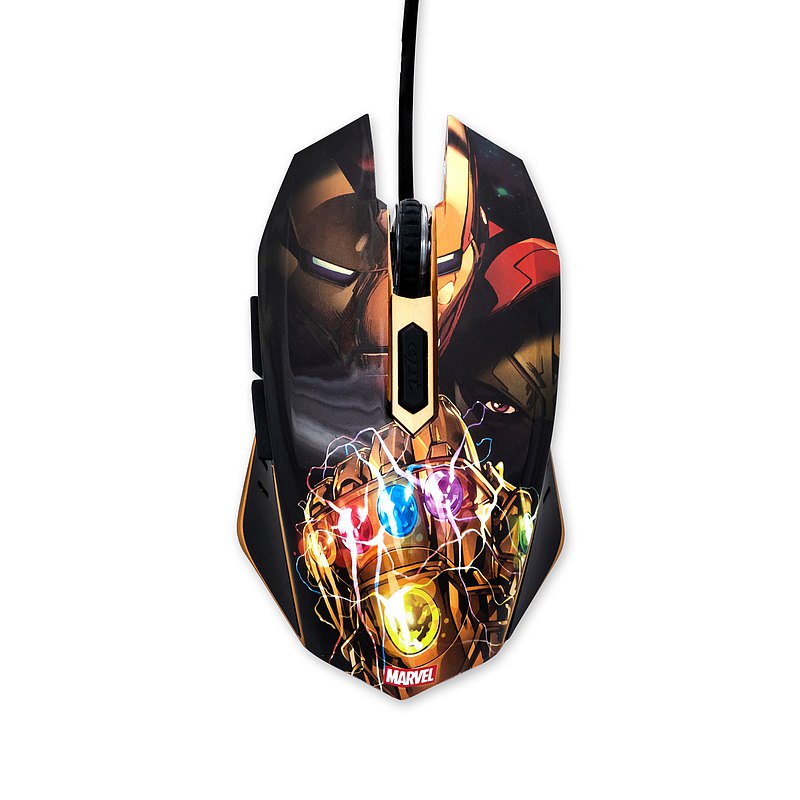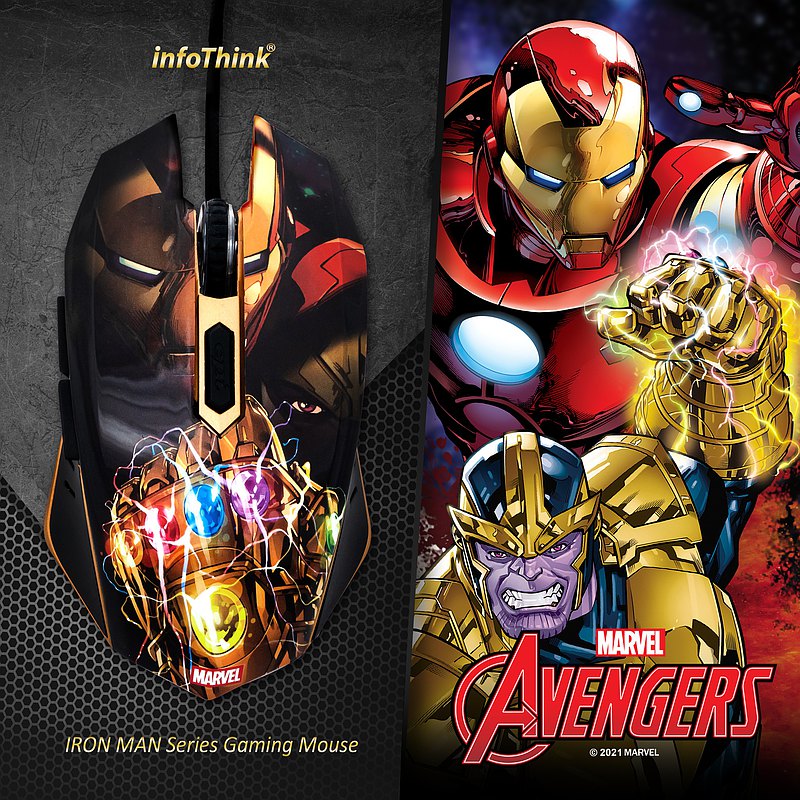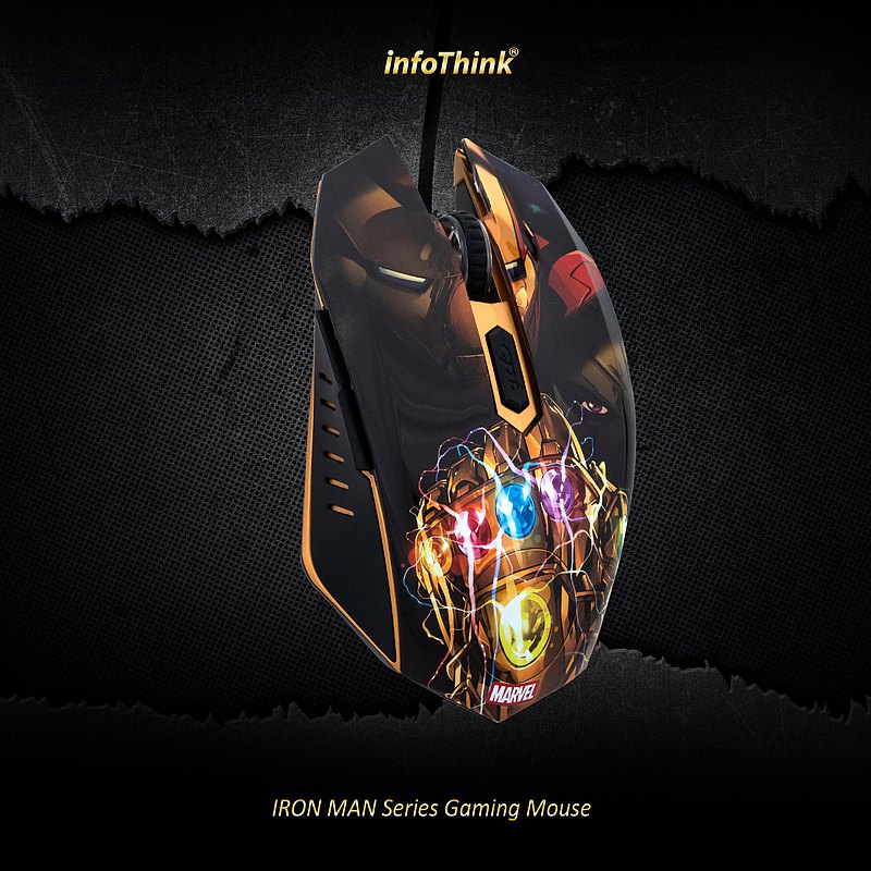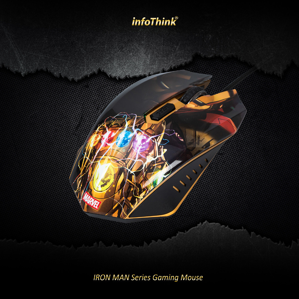 •漫威正式授權 •展現漫威英雄鋼鐵人爭奪無限寶石經典情節設計 •6色RGB燈光對應-靈魂(橘)、現實(紅) 、空間(藍)、力量(紫) 、時間(綠) 、心靈(黃)等無限寶石 •支援6 個3D按鍵,6階DPI切換,適用各種電競遊戲 •符合人體工學抓握設計,提供極佳的控制性能 •回報頻率1000Hz,最高7200 DPI •USB介面,隨插即用,免驅動免設定安裝 •通過BSMI認證