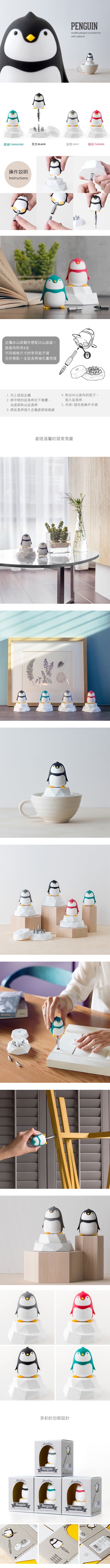 工具也可以很有趣!企鵝螺絲起子將DIY工具融入裝飾美學,讓冰冷的工具賦予溫暖的元素,其兼具質感及可愛的握把不僅提升操作的舒適度外,讓家庭工具的收納、美觀與實用合而為一。同時可提升修繕時親子間的互動、增加女性使用工具的意願、凝聚家庭的情感。 顧家的企鵝有圓滾滾肚子、翹嘟嘟的屁股、帥氣的一搓頭頂毛,搭配一雙期盼的眼神,溫暖俏皮的外型成為家庭裡最實用且美觀的生活用品。企鵝本身是一個具磁力的握把,身體內可容置6支不同規格尺寸的常用起子頭(一字/十字/六角,大小各2支)。 企鵝冰山款額外搭配冰山底座,底座內附有8支不同規格尺寸的常用起子頭(一字及十字大中小各3支,及六角大小各2支),另外搭配一支延長桿強化實用度。 色彩計畫 企鵝提供4個色彩的選擇,分成寒帶色系黑、灰與充滿活力的熱帶色系桃紅、藍綠。 品質的堅持與結構設計 企鵝本體以環保且具高韌性工程級PP塑膠為基材,表面塗佈TPR環保橡膠,提高握持舒適感並同時強化施力所需之摩擦度。為確保日後正式生產時之質感與精緻度,特採用雙色射出、一體成型方式生產。中心起子座採用鉻釩(Cr-V)合金鋼表面度亮鉻,起子頭採用矽合金鋼(S2)表面鍍銀霧效果,均為專業級工具首選用料。 操作說明 1. 拔開企鵝的腳 2. 旋轉底部以選取起子頭 3. 倒出起子 4. 插入底部吸磁處 5. 天呀!完美操作手感