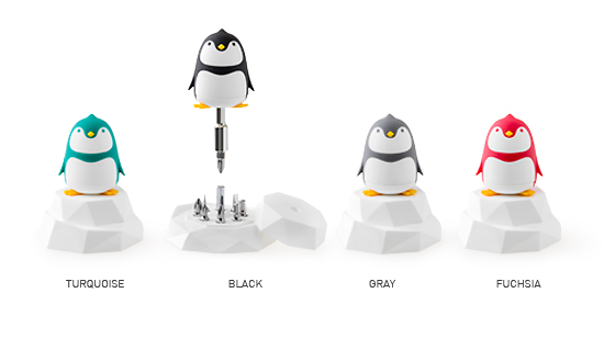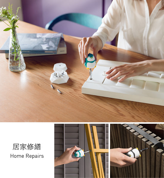 超療癒系 企鵝 螺絲起子組(內含常用規格起子頭x8+延長桿x1)-冰山款 顧家的企鵝有圓滾滾肚子、翹嘟嘟的屁股、帥氣的一搓頭頂毛,搭配一雙期盼的眼神,溫暖俏皮的外型成為家庭裡最實用且美觀的生活用品。企鵝冰山款額外搭配冰山底座,底座內附有8支不同規格尺寸的常用起子頭(一字及十字大中小各3支,及六角大小各2支),另外搭配一支延長桿強化實用度。