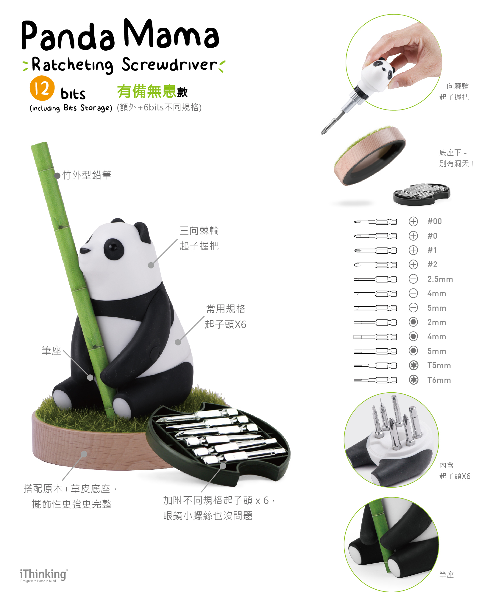 「如果因為我們的設計,能多讓一個人注意到工具,喜歡上工具,進而樂意自己嘗試動手做或修繕,減少更多不必要的浪費;相信這個世界將會越來越美好!」 就是為了這個簡單的理由,我們努力嘗試、堅持改變;每每看到大家因接觸到我們的設計,嘴角自然露出的笑容、發出的驚呼及愛不釋手的神情時,對我們就是一種最大的支持、鼓勵與認同。 延續 iThinking 「溫馨、和諧、有趣,還帶點小驚喜」的商品特色,此次 Panda Mama 以坐姿與環抱雙臂外型設計,強化本身的親和性,用以拉近與使用者間的無形距離;是一點點改變,希望也能為大家的生活多一點點樂趣。