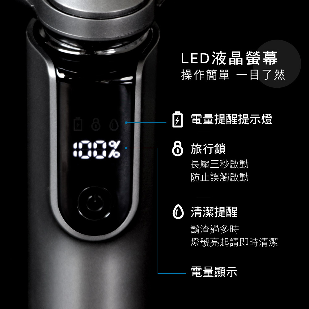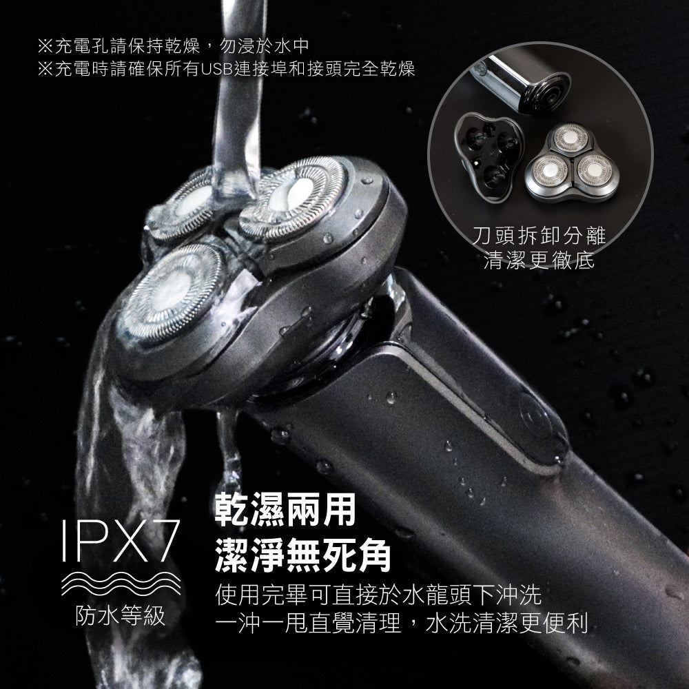 3D立體浮動刀頭:觸感舒適滑順,貼合不同臉型,乾淨不留鬍渣。 雙環極速剃淨刀網:加大剃鬍面積,效率提升,剃鬍更徹底。 充插兩用、9000rpm高效能馬達:刮鬍俐落不扯毛,插電充電都可用。 2小時快充,長效續行60分鐘:外出旅行必備,Type-C接頭隨插即充。 IPX7防水等級:一沖一甩直覺清理,水洗清潔更徹底。 貼心旅行鎖,旅遊更安心:方便收納、不用擔心誤觸開關。