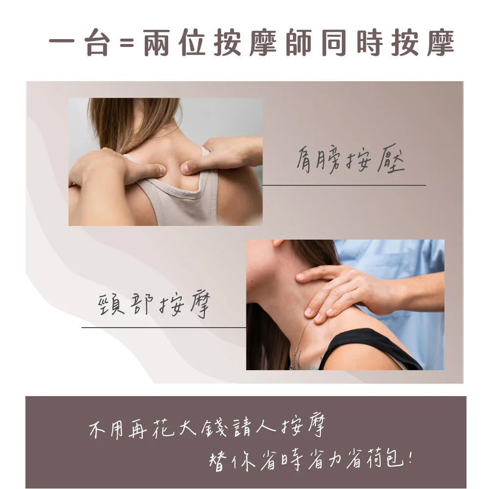揉 捏 - 擬人手設計,彷彿真人指腹按摩 免 持 - 輕輕一扣解放雙手,便利免手持 舒 爽 - 按摩面積大,覆蓋肩頸到斜方肌 溫 暖 - 45/55℃兩檔熱敷,深層釋壓舒緩 透 氣 - 採雙層透氣布,舒適感受再升級 深 層 - 自由手拉加強,調整力度深層按壓 保固說明:非人為因素之損壞,原廠保固一年。 使用前請確實遵從產品說明書內之操作指示及注意事項。 如需辦理退換貨,包裝與配件須完整(商品配件、包裝完整,無刮痕損傷)。