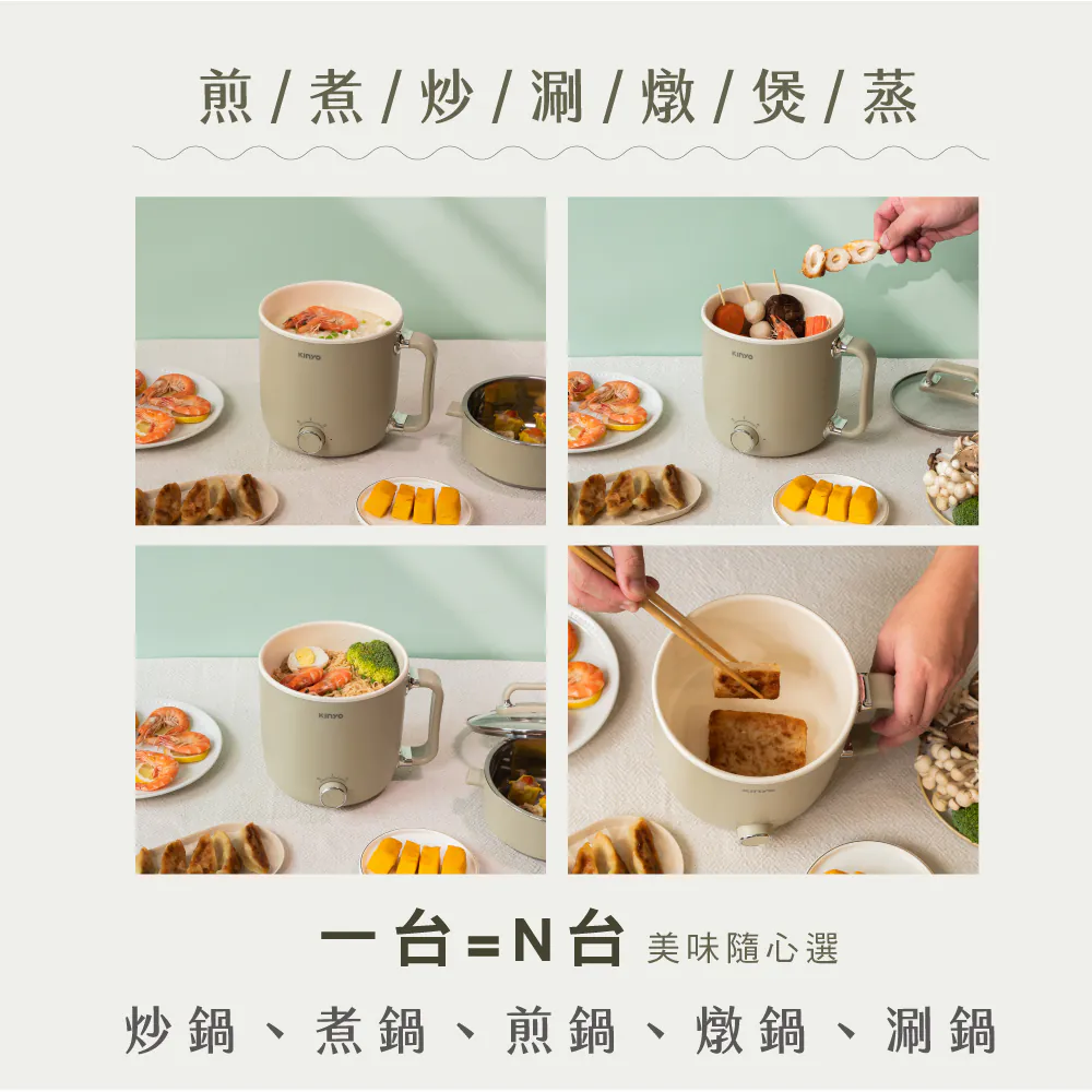 陶瓷不沾塗層/雙層防燙鍋身 好清潔不沾鍋,鎖住溫度不燙手 16CM大口徑/10.5CM深度 烹煮、清洗便利順手,食材翻炒不噴濺 透明強化玻璃鍋蓋/10分鐘熱水沸騰 烹煮狀況一目了然,快速開鍋美食上桌 兩段溫控調節/兩道安全防護 滿足各種料理需求,防乾燒、溫度過載斷電保護 鍋底散熱孔/插孔凸出設計 有效防止發熱盤過熱,延長使用壽命,預防滲水使用更安心 人體工學手柄/簡約無印外型 舒適好握精細質感,視覺味蕾雙倍滿足 1.9L實用容量/收納簡便插電即用 不受空間拘束,個人獨享、多人分享皆適用 附304不鏽鋼蒸籠 上蒸下煮,煎/煮/炒/炸/涮/燉/煲,美味隨心選 保固說明:非人為因素之損壞,原廠保固一年。 使用前請確實遵從產品說明書內之操作指示及注意事項。 如需辦理退換貨,包裝與配件須完整(商品配件、包裝完整,無刮痕損傷)。 產地:中國