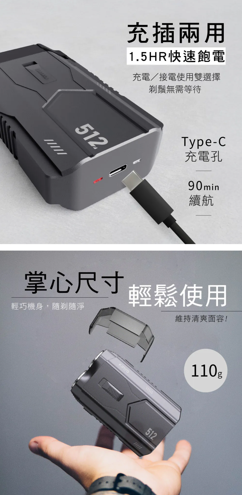 額定輸入電壓:DC 5V 額定工作電壓:DC 3.7V 消耗功率:5W 使用電源:600mAh鋰電池 充電時間:1.5小時 連續使用時間:90分鐘 刀頭材質:不鏽鋼刀片 產品材質:ABS塑膠 配件:Type-C充電線(約1m)x1 清潔刷x1、保護蓋x1