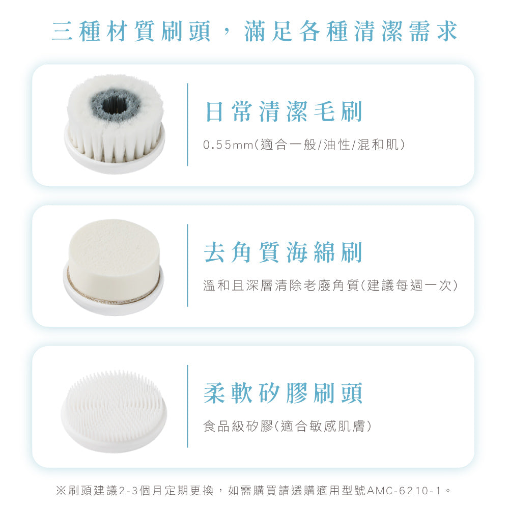 多功能刷頭|搭配三款刷頭,滿足各種清潔需求,徹底潔淨肌膚。 雙向旋轉清潔|正反旋轉方向切換,操作簡單輕鬆,左右臉都兼顧。 360°自動旋轉|無須手動畫圓按摩,深層潔淨肌膚同時享受舒適按摩。 人體工學設計|掌上型小巧機身,人體工學凹槽設計,使用更加舒適。 防水設計|IPX5級防水設計,可置於水龍頭下沖洗,清潔方便,使用更衛生。 USB充電|採用USB充電式設計,免更換電池,便利又環保。 智能安全|具備安全機制,充電時自動鎖定開關,免擔心誤觸開關。 時尚便攜|附贈時尚水滴掌上盒,收納與旅用攜帶都便利!