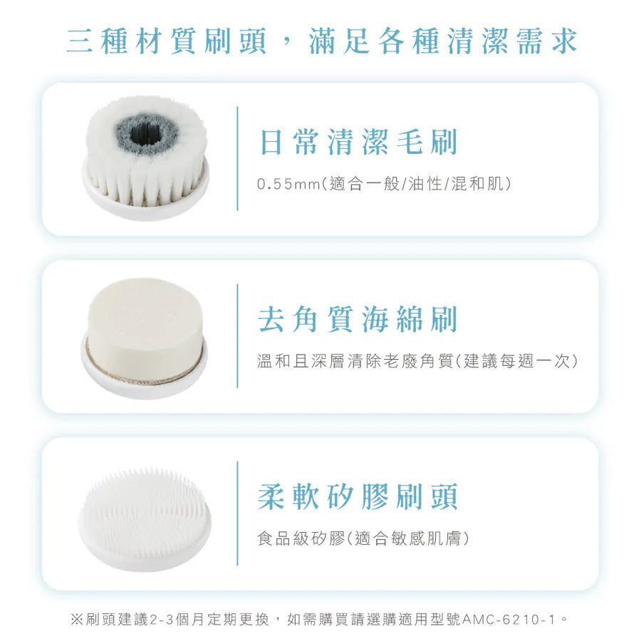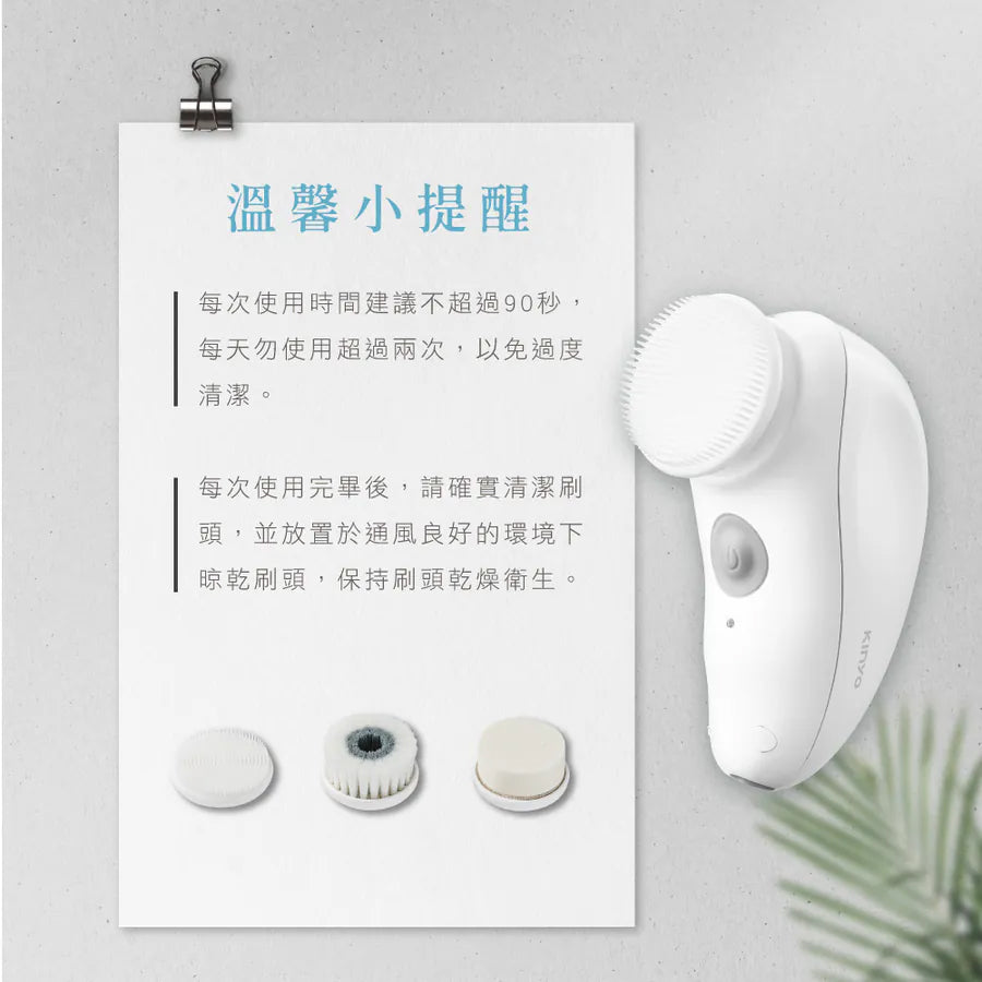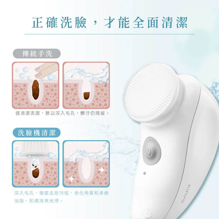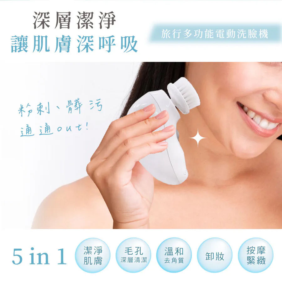 * 多功能刷頭|搭配三款刷頭,滿足各種清潔需求,徹底潔淨肌膚。 * 雙向旋轉清潔|正反旋轉方向切換,操作簡單輕鬆,左右臉都兼顧。 * 360°自動旋轉|無須手動畫圓按摩,深層潔淨肌膚同時享受舒適按摩。 * 人體工學設計|掌上型小巧機身,人體工學凹槽設計,使用更加舒適。 * 防水設計|IPX5級防水設計,可置於水龍頭下沖洗,清潔方便,使用更衛生。 * USB充電|採用USB充電式設計,免更換電池,便利又環保。 * 智能安全|具備安全機制,充電時自動鎖定開關,免擔心誤觸開關。 * 時尚便攜|附贈時尚水滴掌上盒,收納與旅用攜帶都便利!