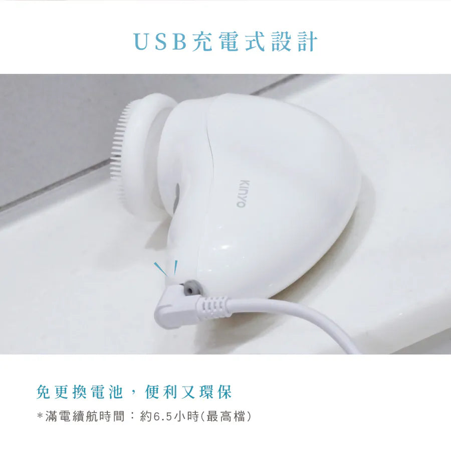 額定電壓:DC 5V 1A 總額定消耗電功率:5W 電池規格:800mAh鋰電池 充電時間:約2.5小時 滿電續航時間:約6.5小時 (實際會依環境溫度與使用模式等因素,影響充電及使用時間。) 材質:ABS塑膠、矽膠 產品尺寸:145*98*50mm 包裝尺寸:107*54*148mm 產品重量:162g(含收納盒) 配件:USB充電線×1、洗臉刷頭x3、手腕掛繩×1、收納盒×1 ■保固說明:非人為因素之損壞,原廠保固一年。 ■使用前請確實遵從產品說明書內之操作指示及注意事項。 ■如需辦理退換貨,包裝與配件須完整(商品配件、包裝完整,無刮痕損傷)。 產地:中國